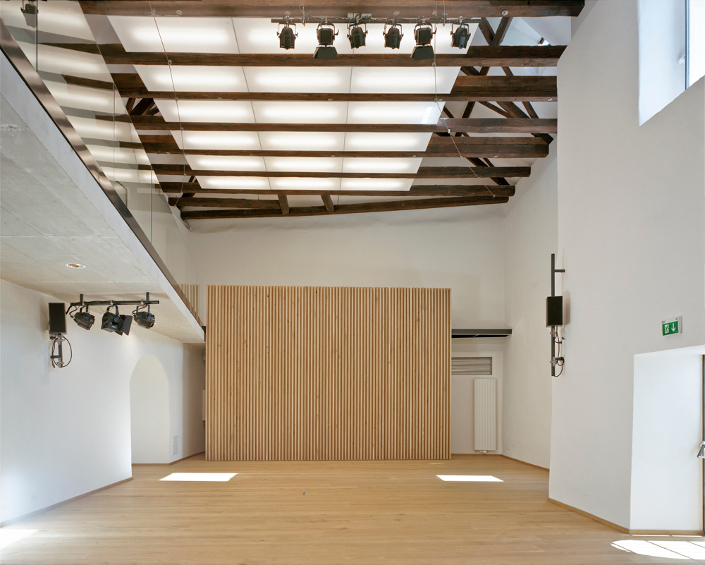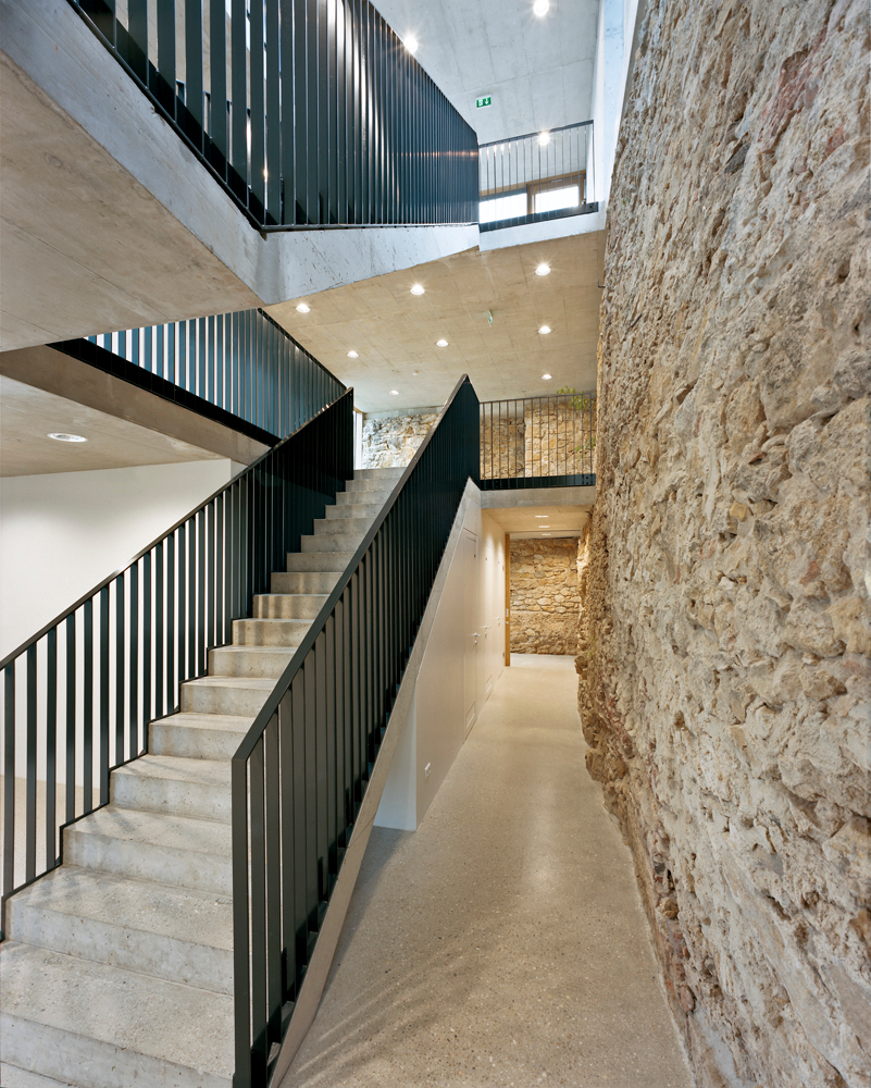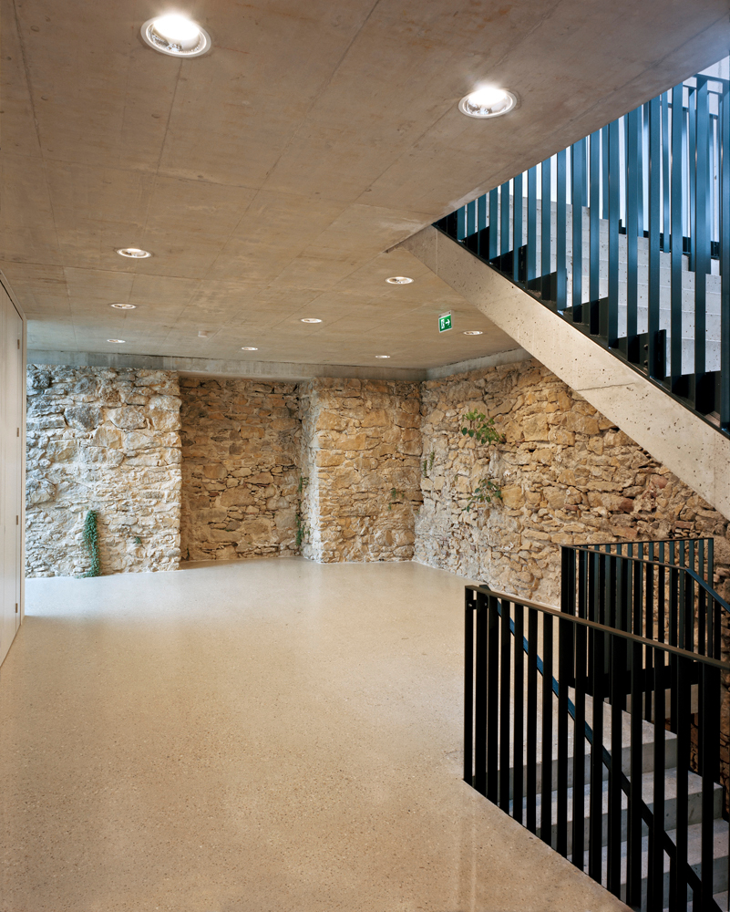 Energiesystem: Fernwärme. Die Wärmeabgabe im Foyer erfolgt über thermisch aktivierte STB-Deckenplatten. OIB-RL 6, 5.1 ist mit 22,7 kWh/m3a eingehalten.