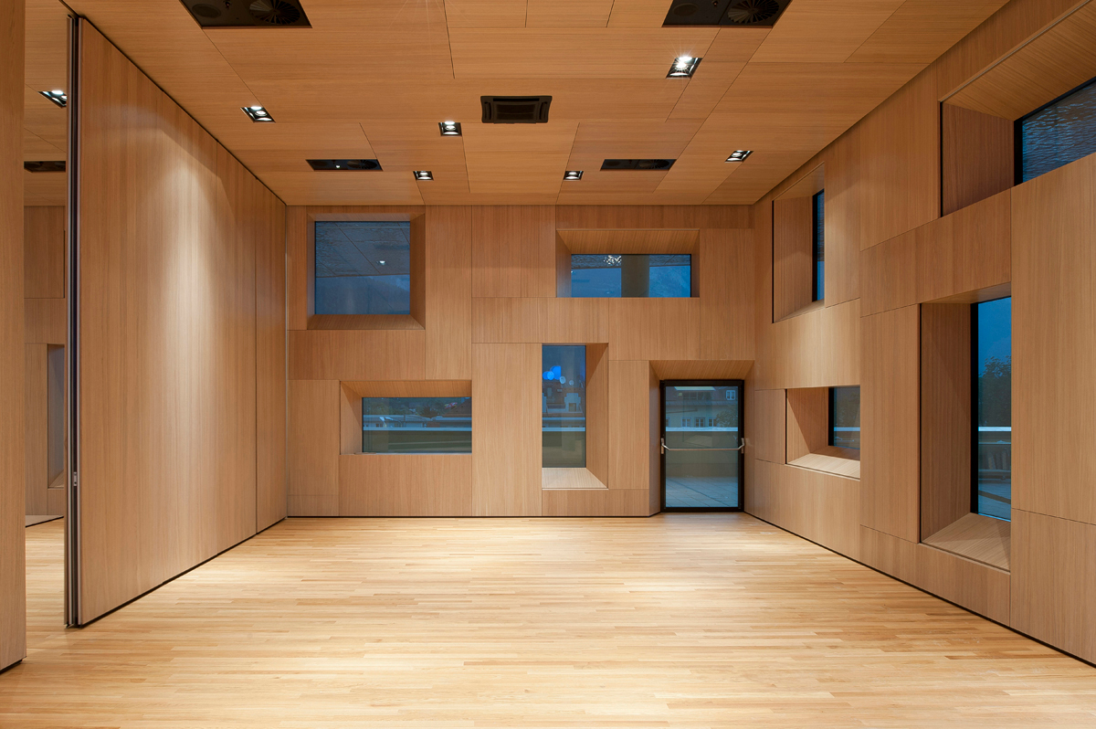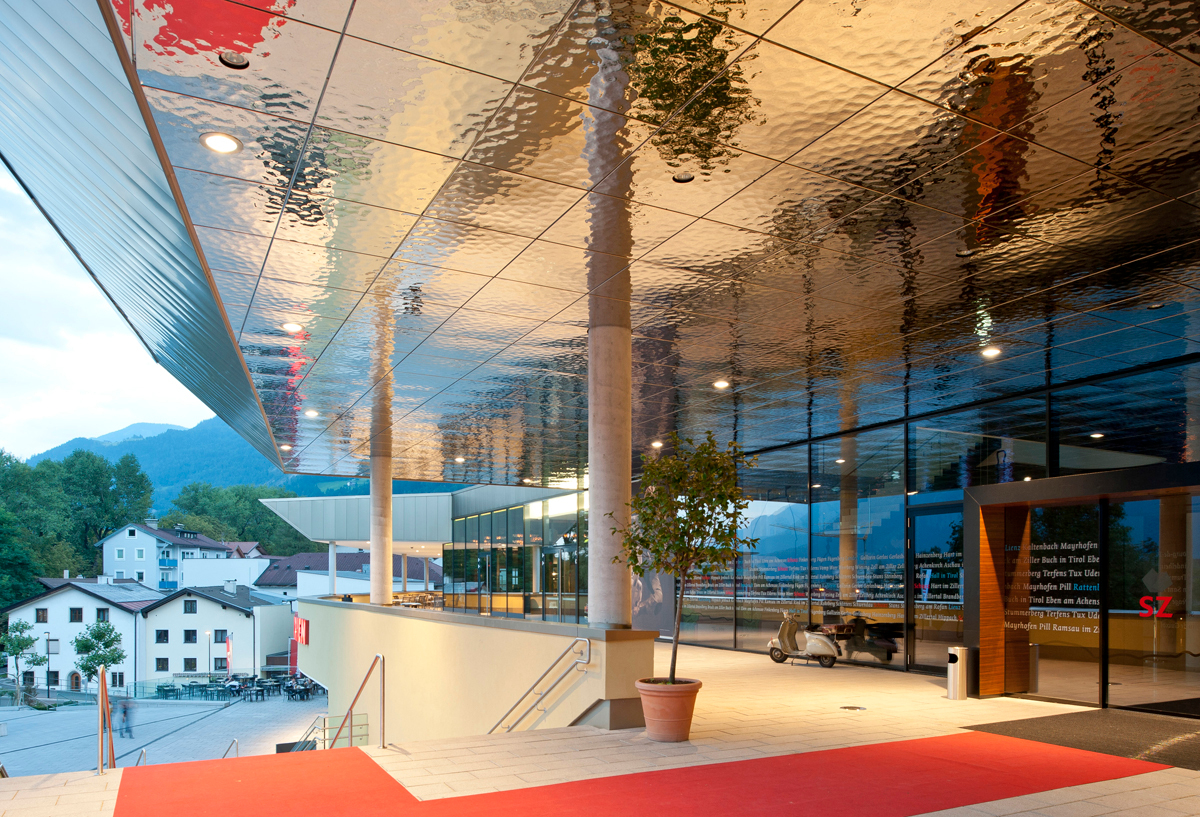 Schon 2007 hatte es einen geladenen Architekturwettbewerb für das ursprüngliche Raumprogramm gegeben, den die Architekten Henke und Schreieck gewannen. Man muss das damalige Wettbewerbsergebnis mit dem aktuellen Stand vergleichen, um zu erkennen, welche Chance hier verschenkt wird: Aus einer gegliederten Bebauung mit viel Luftraum und Terrassen ist ein ungeschlachter Fremdkörper geworden, der rücksichtslos alle Reserven aus dem Grundstück quetscht. Der Vorplatz, von dem aus Außentreppen zum Stadtsaal führen, liegt beschattet an der Nordseite, während Henke und Schreick für den Platz eine südwestseitige, zum Inn hin offene Terrasse vorgesehen hatten. Von der offenen Passage im Inneren sind nur ein paar Lichtschächte geblieben, und dass die Alleebäume im damaligen Wettbewerb nicht angetastet werden durften, versteht sich fast von selbst.