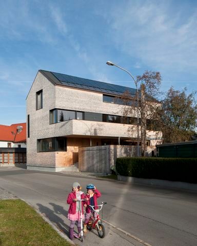 - Holzbau, Überwiegende Verwendung von Dämmstoffen aus nachwachsenden Rohstoffen, Vermeidung von PVC für Fenster, Türen, Vermeidung von PVC im Innenausbau