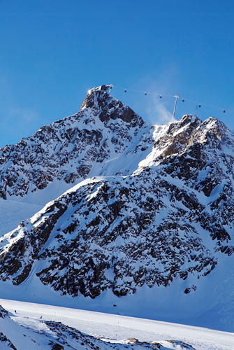 Wie ein von Wind und Wetter geformter Gupf balanciert die mattsilberne Bergstation samt zugehörigem Café und Aussichtsterrasse nun auf der Kante des Hinteren Brunnenkogels. Vorteil war dabei, dass man sich auf die Fundamente der alten Bergstation stützen konnte. „Eine komplette Neuerrichtung an einer so exponierten Stelle wäre heute auch aus Naturschutzgründen praktisch unmöglich“, sagt Stefan Richter, Marketingchef der Pitztaler Gletscherbahnen.
