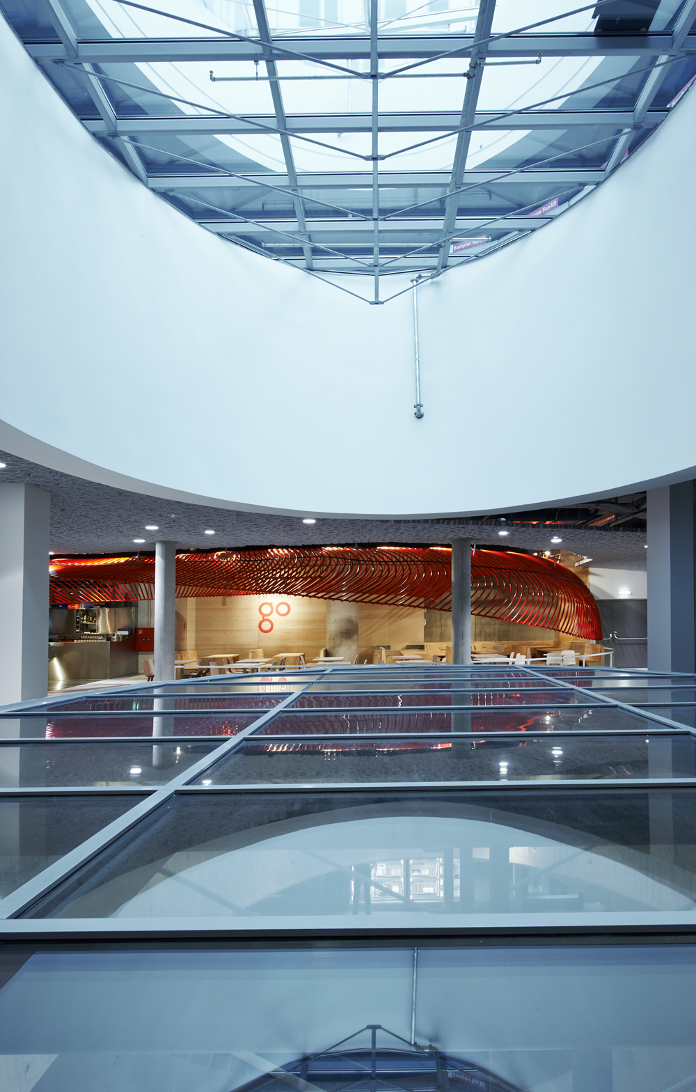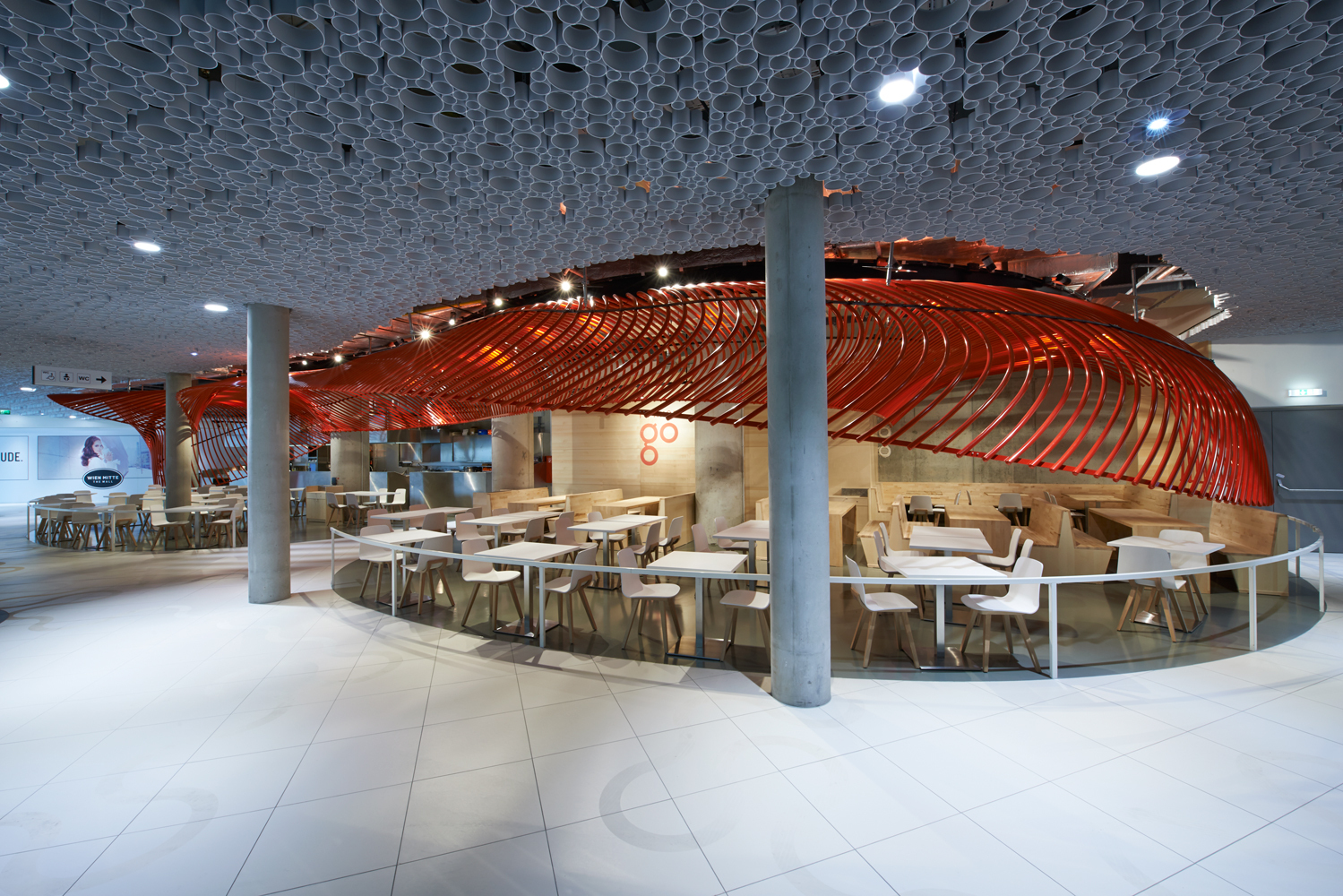 Die Farbe Rot ist die CI-Farbe des Restaurants und dient als Blickfang in der Mall – ein perfekter Treffpunkt, der nicht zu übersehen ist.