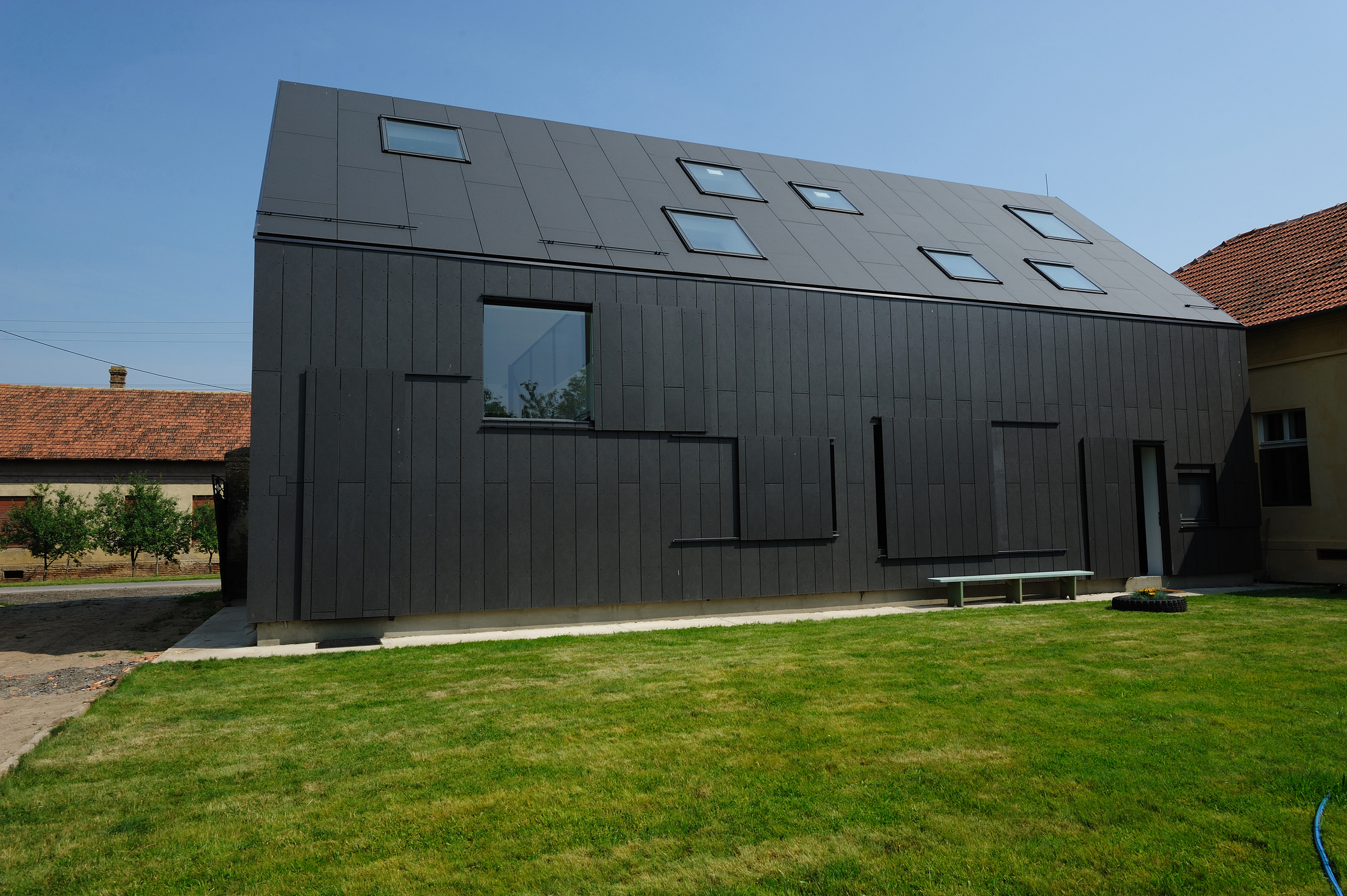 An invited competition resulted in the young architects of Studio AUTORI to design the cultural-tourist ensemble of the Terra Pannonica Company in Mokrin, a small town in northern Serbia, in the Vojvodina region. These types of villages are characterized by regular communication infrastructure, organization of buildings on the plots and typology of buildings. The concept of Terra Panonica estate is to interpret the ambient in a contemporary way, in order to give new meaning to the term village estate. It is planned to consist of four houses of which two have been completed until now, House B and House A. House B was completed in 2011, as an office and studio space for workshops and creative activities. House A was completed in 2012, as a guest house with apartments and communal spaces for relaxation and socialization. The architects faced a challenging task because of the manifold demands of the company, which is engaged in marketing authentic local produce and food, in modern design packaging, and developing new trends in high-end tourism. The architects were required to design offices for the company and educational facilities and to treat the existing complex of buildings with respect. The basic idea was to offer an interconnected cluster of facilities for culture, art and the exchange of knowledge and experience,accommodating participants and visitors, in particular young professionals from the region. (Text: Miodrag Ninić and Vesna Vučinić)