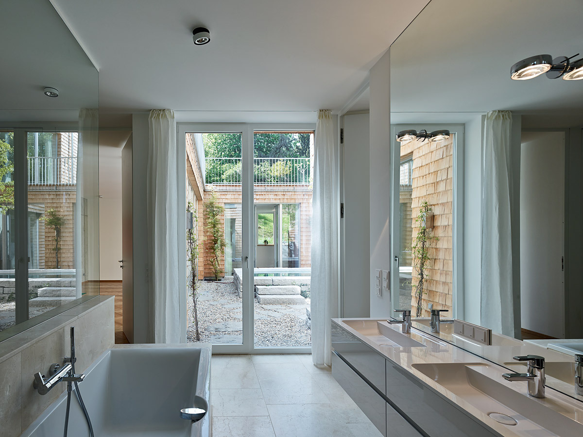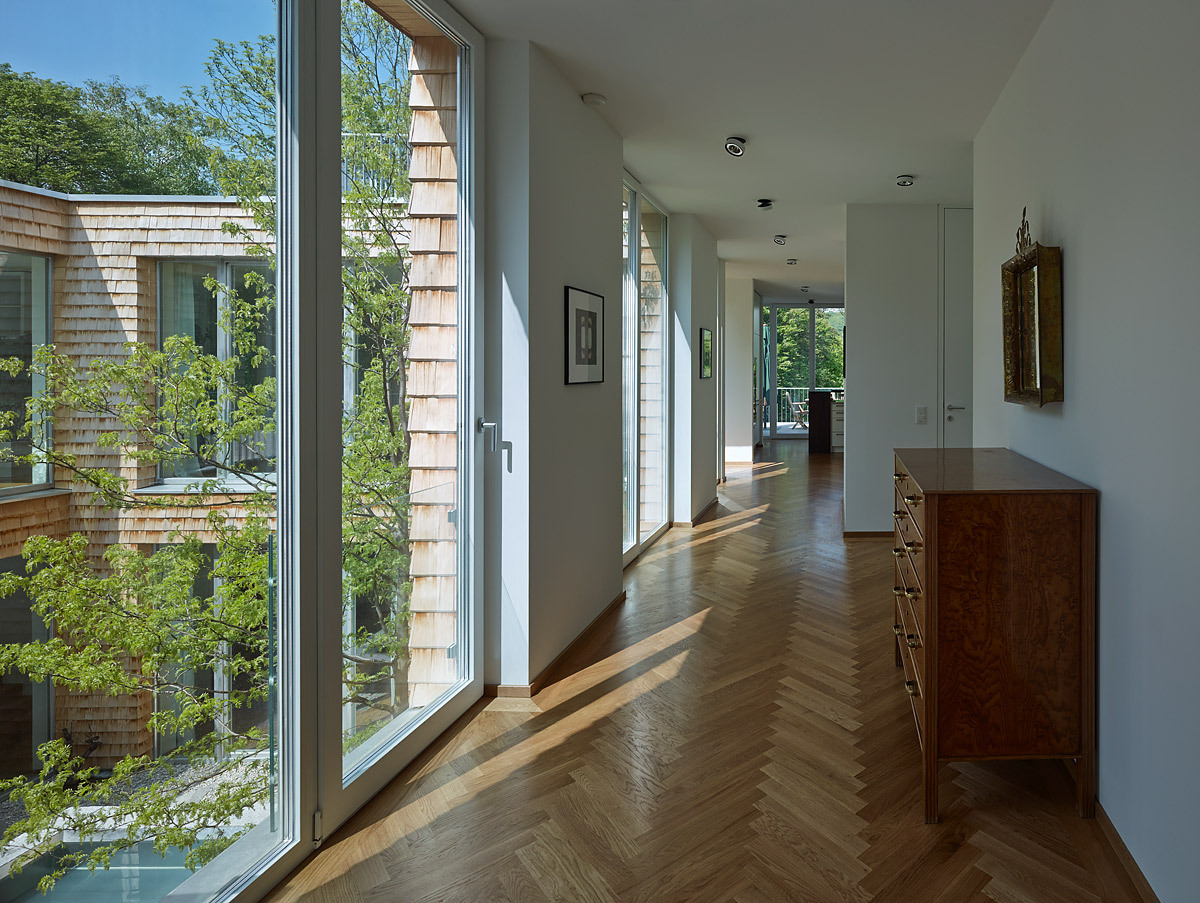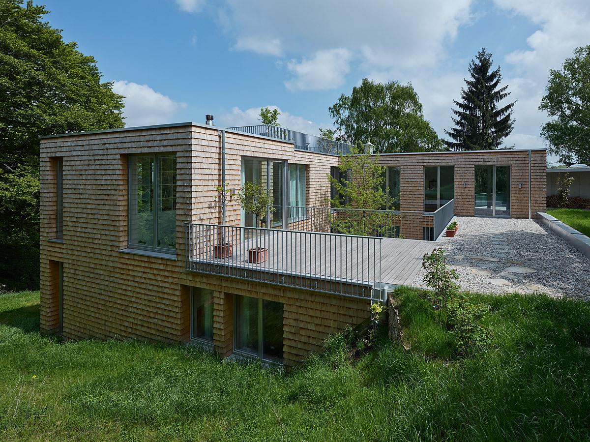 - Holzbau, Stahlbeton, Überwiegende Verwendung von HFKW-freien Dämmstoffen, Vermeidung von PVC für Fenster, Türen, Vermeidung von PVC im Innenausbau