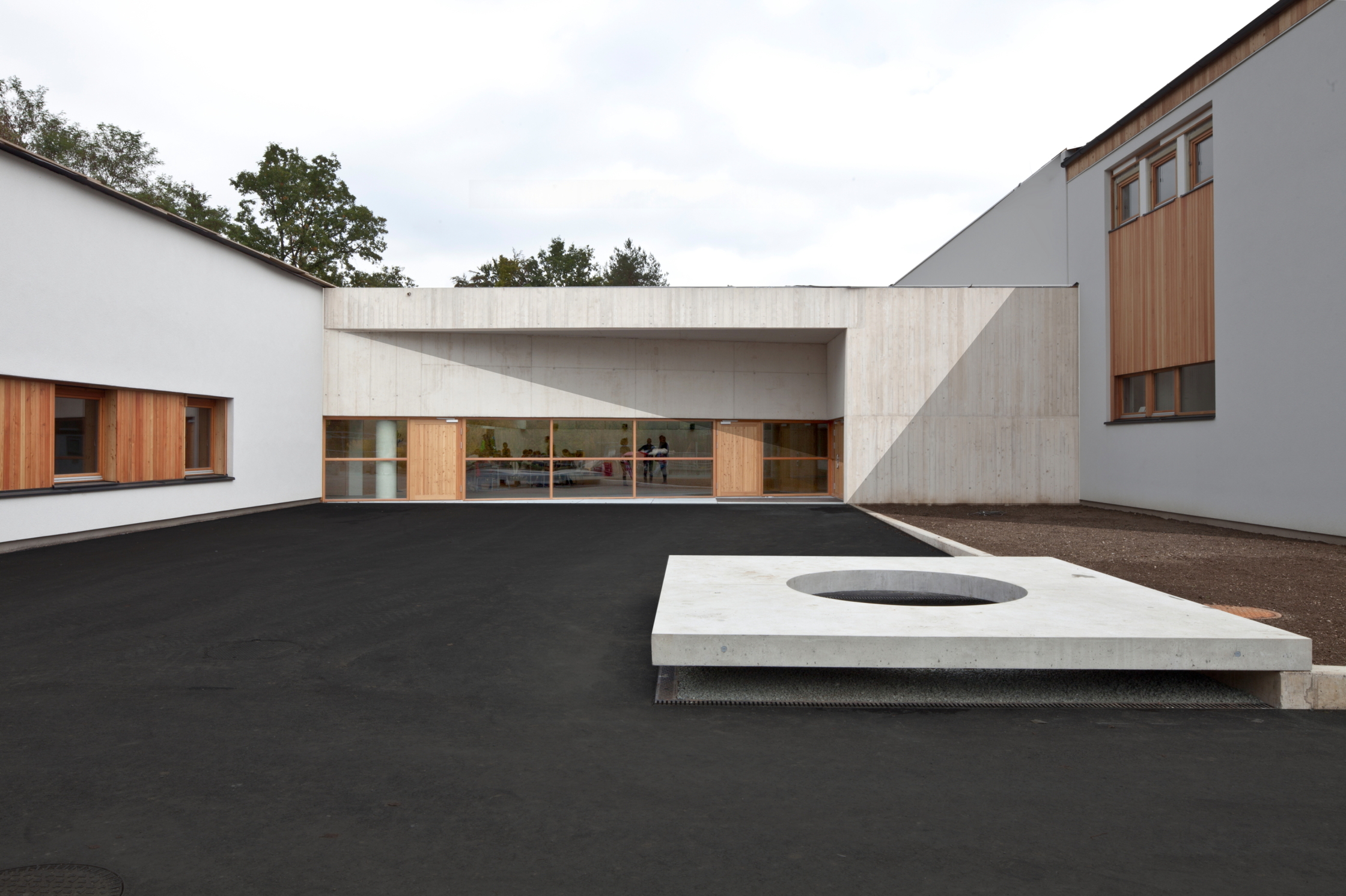 In allen Unterrichtsräumen ist ein kontrolliertes Lüftungssystem installiert, welches die Konzentrationsfähigkeit der Schüler (-und Lehrer-) erheblich verbessert. (Text: Architekten)