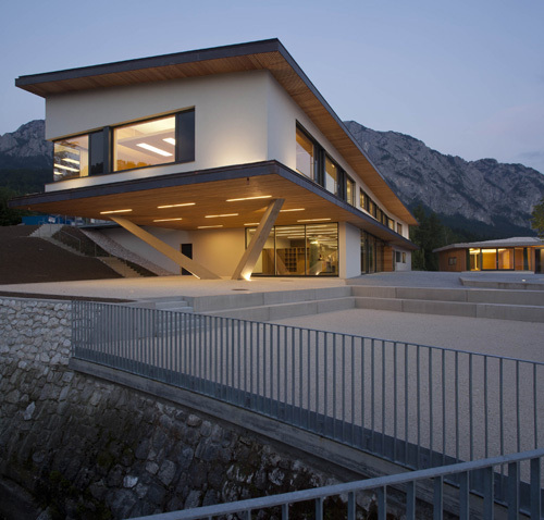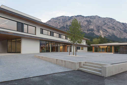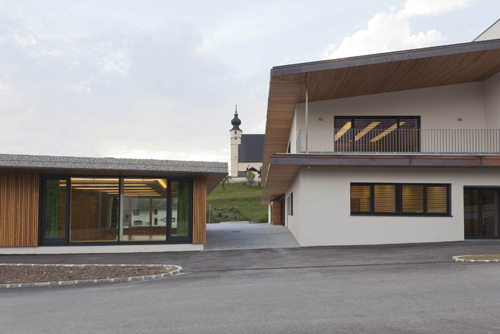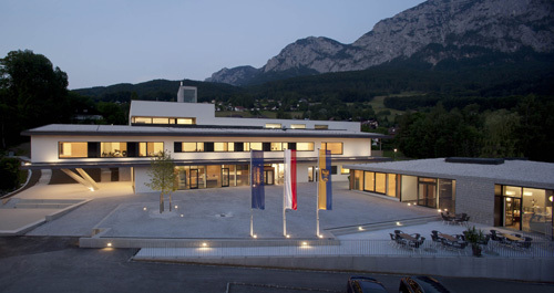 Das neu errichtete Gemeindezentrum konzentriert öffentliche Einrichtungen und bildet die örtliche Mitte in der seit 1886 eigenständigen Gemeinde Steinbach am Attersee.