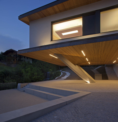 Während der westliche Teil mit einem zum See abfallenden Pultdach gedeckt ist, ist das Dach des östlichen Trakts mit Bauhof und Feuerwehr zum Hang hin geneigt.