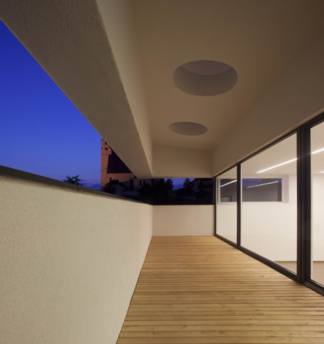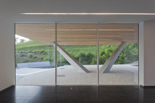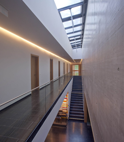 Dank des geschickten Einsatzes des Oberlichtes ergibt sich eine natürliche Orientierung im Haus. Im Obergeschoss befinden sich die Büros der Verwaltung sowie ein Proberaum der örtlichen Musikkapelle und der Gemeindesitzungssaal.