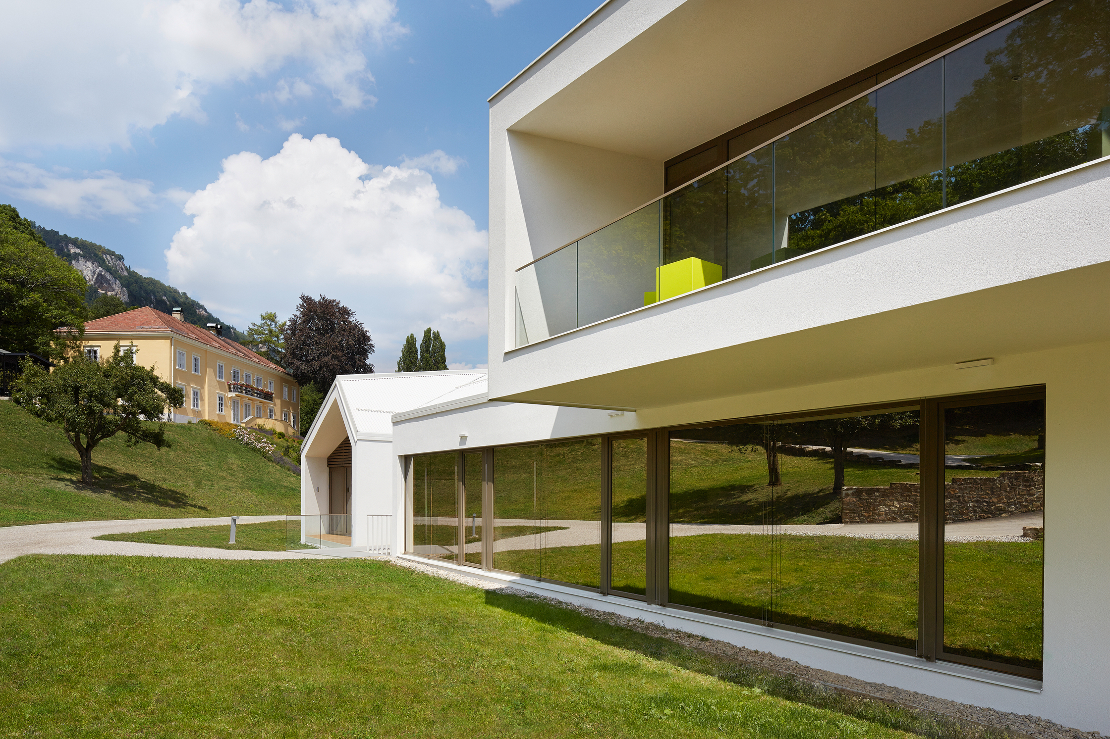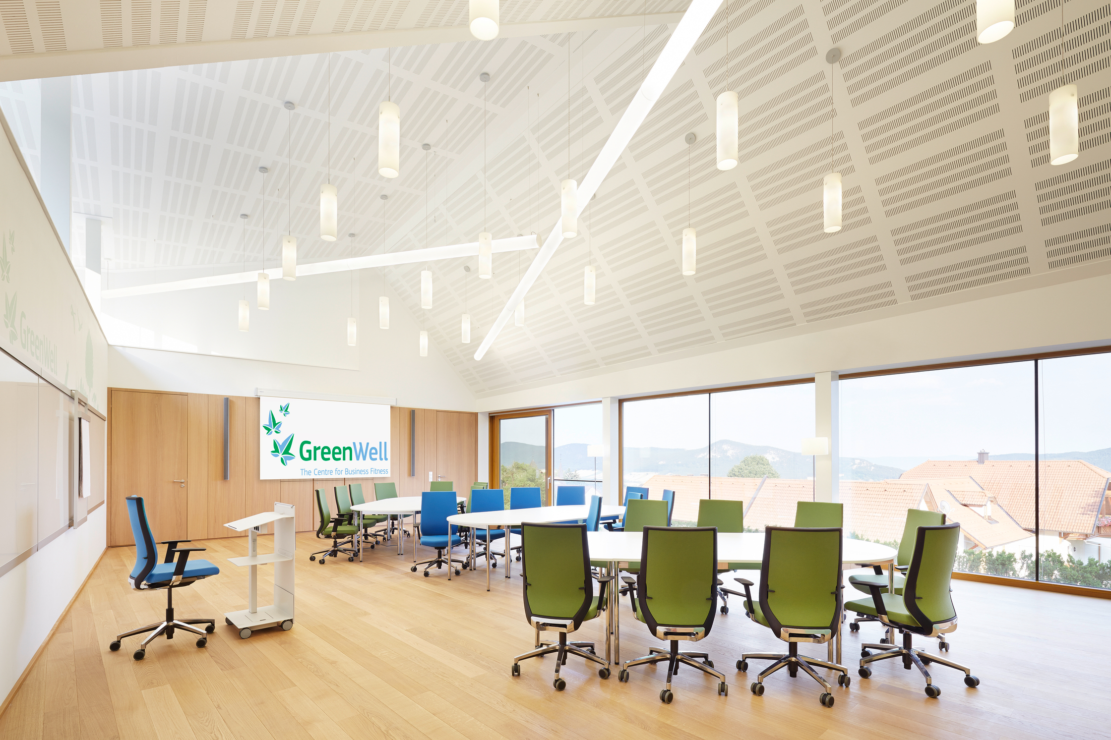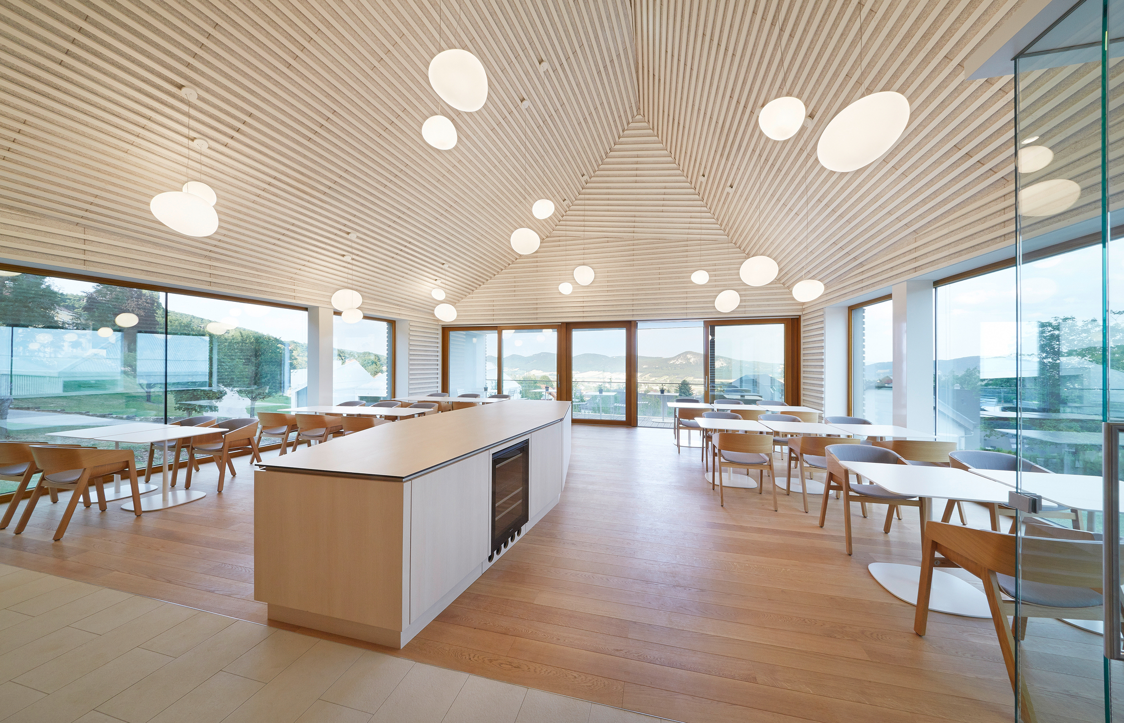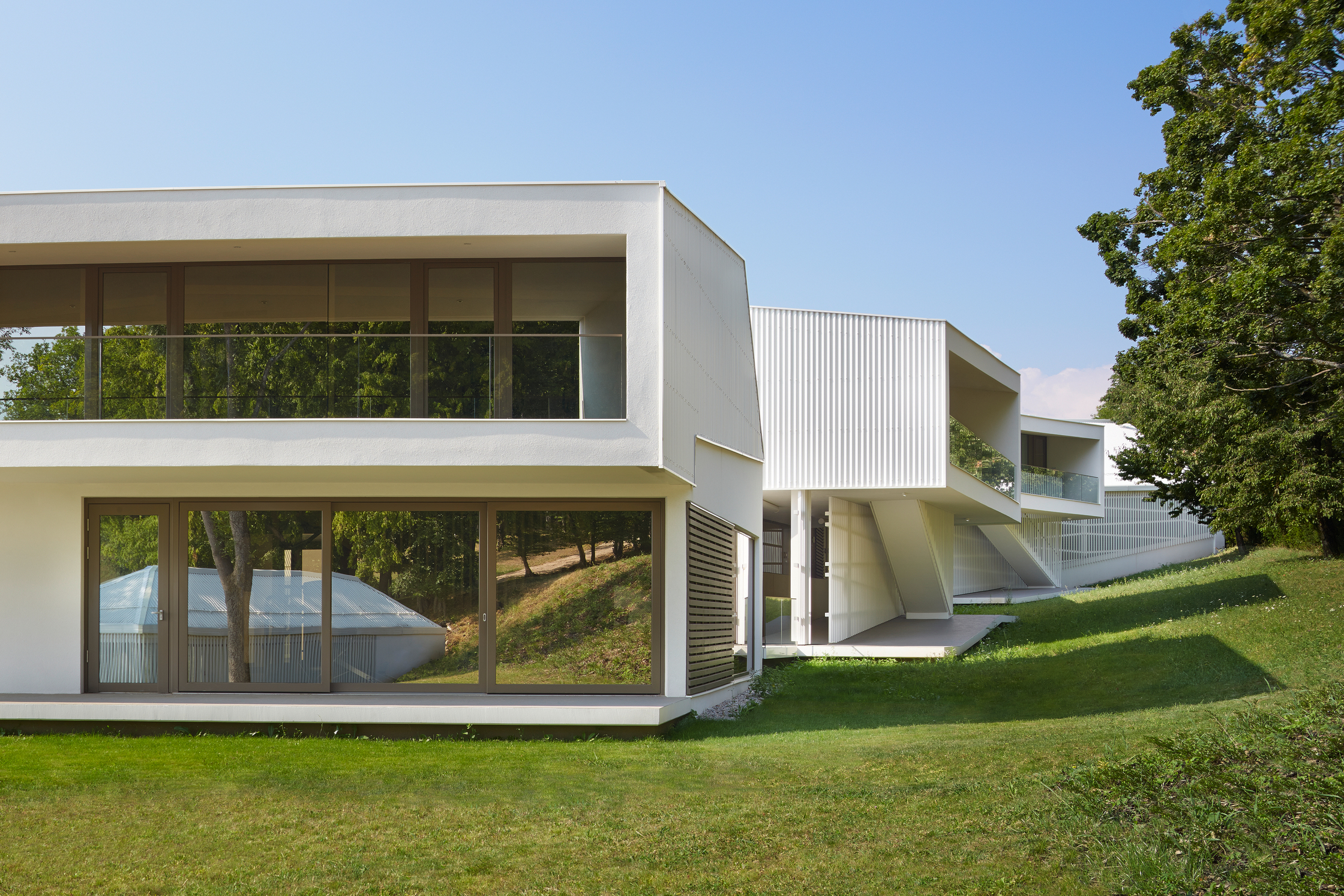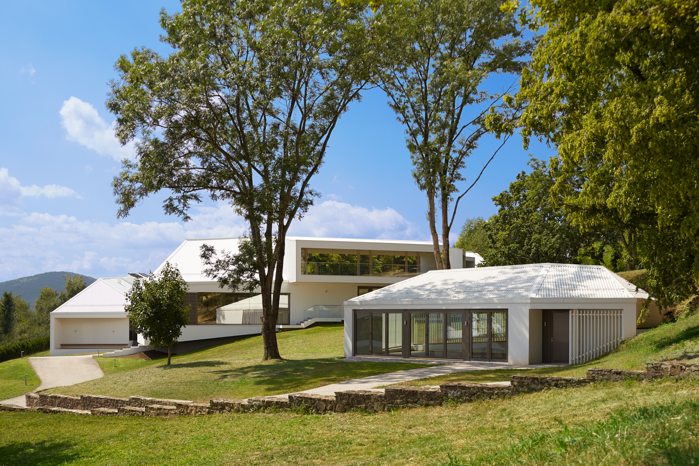 Die Konferenzanlage weist einen Gesamt-Heizwärmebedarf von HWB=12,65kWh/m³a auf, aufgegliedert auf die Gebäude ergeben sich ein Heizwärmebedarf für Gebäude I HWB=13,67kWh/m³a, Gebäude II HWB=14,53kWh/m³a und Gebäude III HWB=9,92kWh/m³a. Fenster und Türen sind in Holz und Holz-Aluminium mit einer 2-Scheiben-Wärmeschutzverglasung ausgeführt. Zur Gewährung eines durchgängigen Bauteilprinzips ist der gesamte Dachraum als Warmdach realisiert. Zur Vermeidung sommerlicher Überwärmung erfolgt die Verschattung der Fenster des Beherbergungsgebäudes durch Vordächer und auskragende Decken. Fenster und Fenstertüren des Konferenzgebäudes sind mit innen- und außenliegenden Verschattungssystemen ausgeführt. Zur Verbesserung des Raumklimas sind sämtliche Boden- und Geschossdecken in Nassestrich hergestellt.