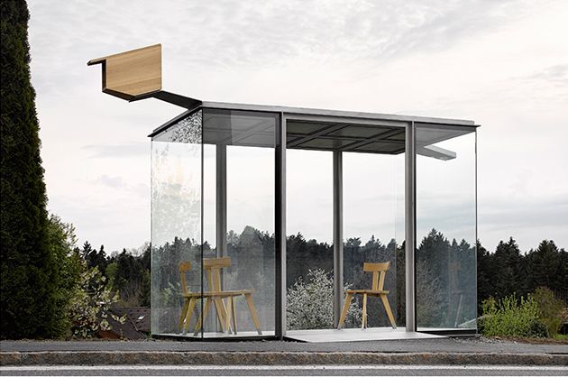 Sieben internationale Architektenbüros aus Japan, Belgien, Spanien, Chile, Russland, Norwegen und China gestalten kleine Nutzbauten im öffentlichen Raum: Buswartehäuschen, von lokalen Partner-Architekten begleitet, von lokalen Handwerken umgesetzt. Sie treten damit in Dialog mit den Menschen, der Landschaft und der lokalen Baukultur- und Handwerkstradition des Bregenzerwaldes. Die Region Bregenzerwald macht sich auf, anhand einer scheinbar kleinen gestalterischen Aufgabe unterschiedliche Vokabulare und Denkschulen zwischen Ost und West, Nord und Süd zu vergleichen, gegenüberzustellen und zu verbinden. Als berühmtes Architekturland will sie den internationalen Austausch mitgestalten. Das Projekt wurde über Sponsoren weitgehend frei finanziert. Das Honorar für die internationalen Architekten: Ein Urlaub im Bregenzerwald. Gastwirte, Handwerker und Unternehmer des Dorfes und der Region unterstützen BUS:STOP Krumbach tatkräftig. Dietmar Steiner, Direktor des AzW Architekturzentrum Wien, fungierte als Kurator: „In der kleinen Form liegt die größte Herausforderung für die Architektur. Nur die Besten schaffen das Große im Kleinen.“ (Nach einem Text von kultur krumbach)