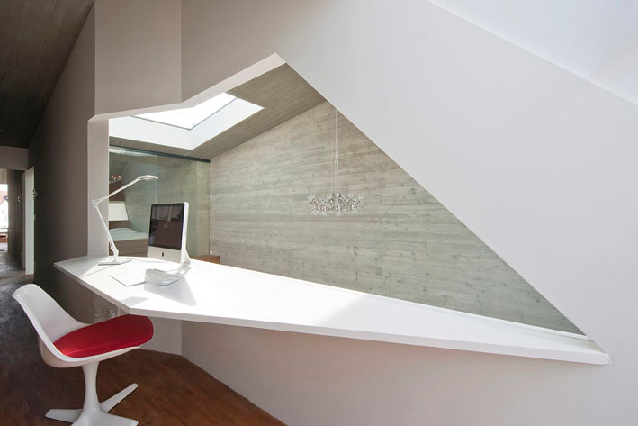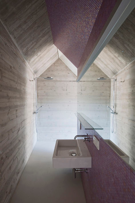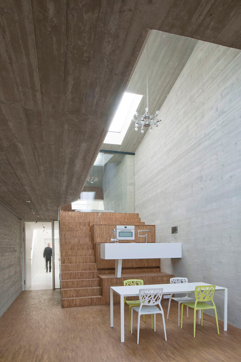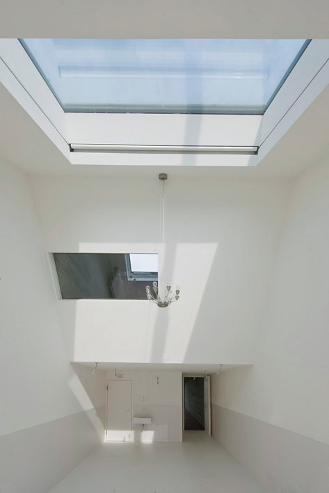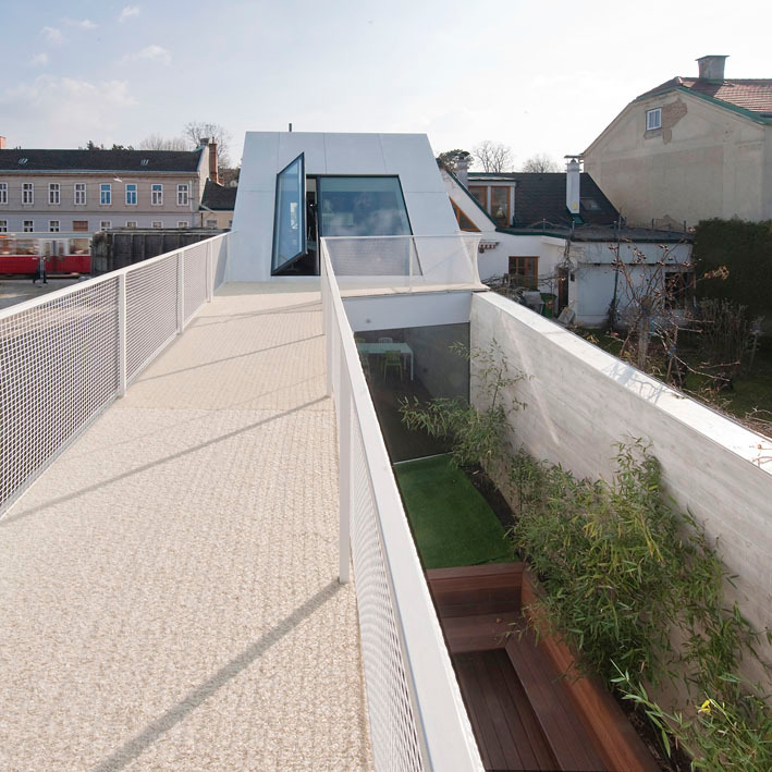 Durch die Kaminwirkung des überhöht ausgeführten zentralen Wohnbereichs kann über öffenbare Dachelemente eine natürliche Be- und Entlüftung ohne den Einbau einer Lüftungsanlage gewährleistet werden.