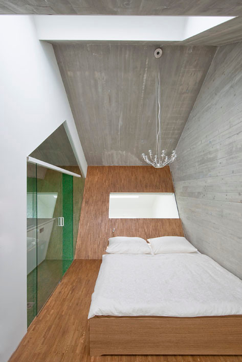 Das Haus CJ5 hat eine Nutzflächendichte von 1,0 (Wohnnutzfläche / Grundstücksfläche), die der Dichte eines 4-5 geschossigen Wohnblocks entspricht (NFD Einfamilienhaus Standard: 0,2-0,4) und verbraucht somit nur die Flächenressourcen einer anzustrebenden dichten städtischen Bebauung.