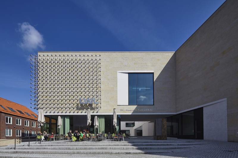 Für das Landesmuseum für Kunst und Kulturgeschichte im Münster hat Volker Staab einen Erweiterungsbau geschaffen. Dieser zeichnet sich aus durch eine Sequenz von Eingangshof, Foyer und lichtem Patio.