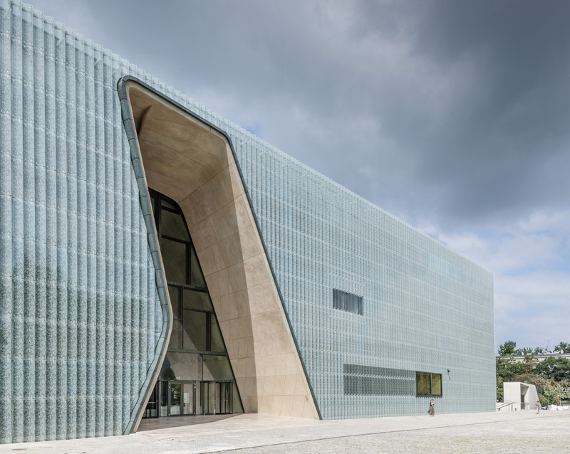 Das Gebäude sei „das Gegenteil von Holocaust-Architektur“, erläutert die Programmdirektorin: Mit seiner Offenheit und Transparenz vermittle die vom finnischen Architekturbüro Lahdelma & Mahlamäki entworfene Konstruktion eine „Botschaft der Hoffnung“. In einer Art Tor öffnet es sich zum 1948 errichteten Denkmal für die Helden des Ghetto-Aufstandes von 1942. Auf der gegenüberliegenden Seite symbolisiert eine riesige verglaste Öffnung in der Front quasi den Blick in die Zukunft.