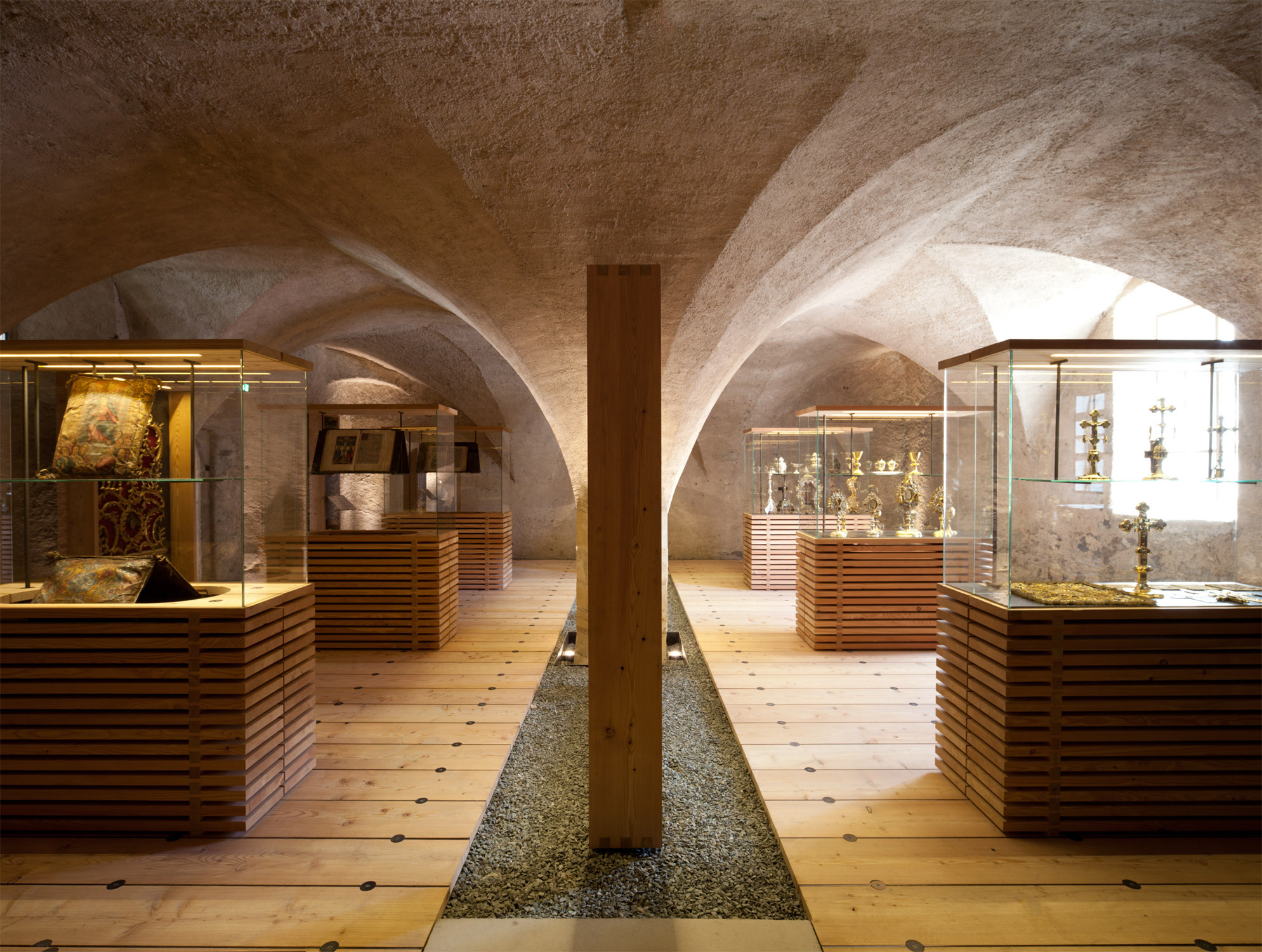Seit April 2014 haben die kunsthistorischen Schätze des Kärntner Diözesanmuseums in der im 15. Jahrhundert errichteten Propstei Gurk, die einen Hof weit entfernt vom berühmten romanischen Dom steht, eine neue Heimat – die Schatzkammer Gurk. Die Einrichtung eines Museums in den vorwiegend gotischen Wirtschaftsräumen verlangte nach besonnener Herangehensweise, kreativer Gestaltungsqualität und die Fähigkeit, auf das Vorhandene einzugehen und dabei die Eigenheit und Qualitäten der historisch aufgeladenen Räume zu nützen. Außerdem die Gabe, konzeptionell zu denken und das Ganze im Blickfeld zu behalten. Weiters die Gratwanderung zwischen der Zurücknahme des eigenen Gestaltungsdrangs und der Eigenständigkeit und Wirkkraft eines Entwurfs für eine so „starke“ Hülle. Und schließlich die genaue Kenntnis der eingesetzten Materialien und das Vertrauen auf handwerkliches Können, das im Umfeld des Gurktales noch zu finden ist.