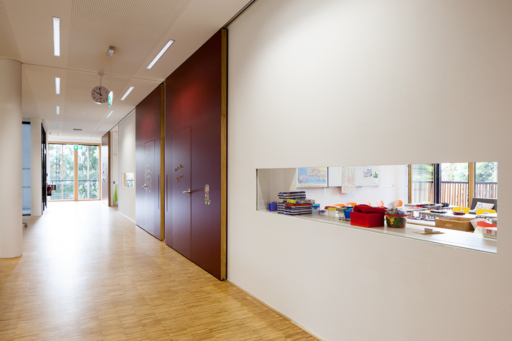 Durch die wenig gegliederte Gebäudestruktur, die Lage der warmen Räume übereinander, die kontrollierte Lüftungsanlage mit Wärmerückgewinnung und die Ausführung in Holz-Mischbauweise – Gebäudehülle aus vorgefertigten hochwärmegedämmten Holzelementen – erreicht die Volksschule den zertifizierten Passivhausstandard. Sämtliche Einbauelemente (Wände, Dachfenster, Fenster, Türen) und Wärmebrücken sind zertifiziert passivhaustauglich. Die Speichermasse der in Massivbauweise errichteten Decken dienen der Bauteilaktivierung.