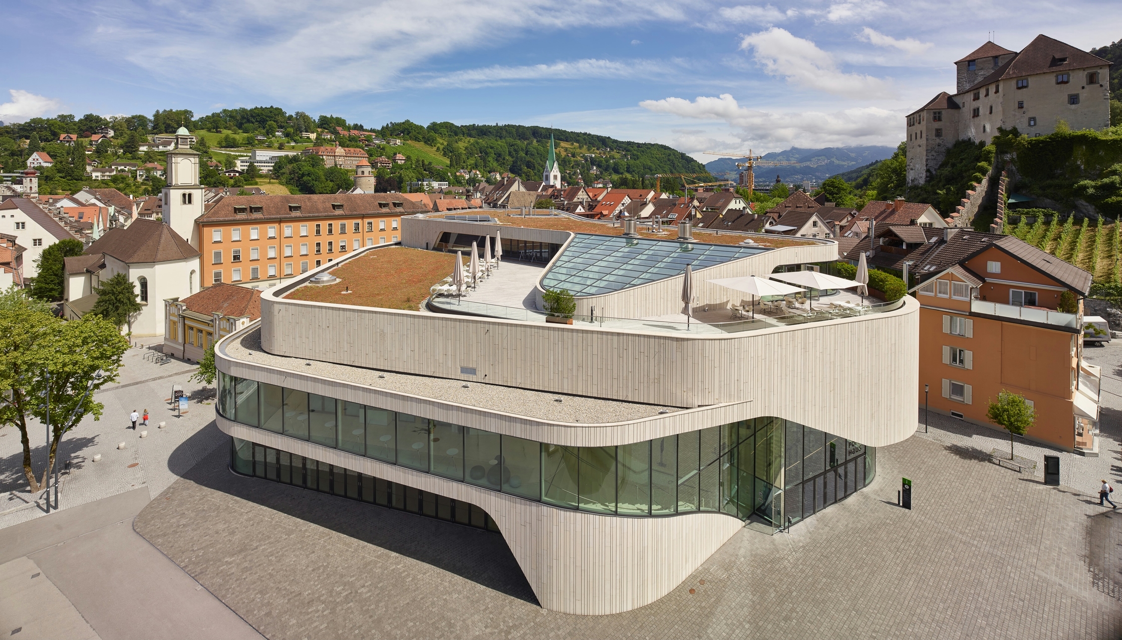 Die Sanierung des Montforthauses aus den 70er Jahren war nach eingehender Prüfung nicht mehr vertretbar, so entschloss man sich in Feldkirch für den Neubau eines Konzert- und Kongresshauses an derselben Stelle. Beim geladenen europaweiten Wettbewerb überzeugte der Entwurf von Hascher Jehle und Mitiska Wäger Architekten mit sensibler Modellierung des Volumens in das Altstadtgefüge. Nirgends eckt das neue Montforthaus an. Die beengte Situation im Bereich Ziegelhofgasse und Entenbachgasse wird aufgelöst, die denkmalgeschützte sieben Meter hohe Stadtmauer freigestellt, es entstehen neue Querverbindungen in den charmanten Gassen der Altstadt und zum Gymnasiumhof ein multifunktioneller Platz, der Haupteingang orientiert sich Richtung Rösslepark.