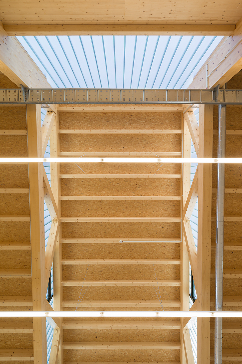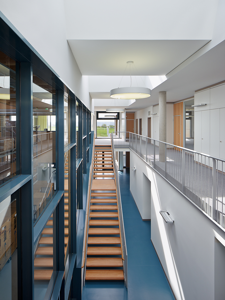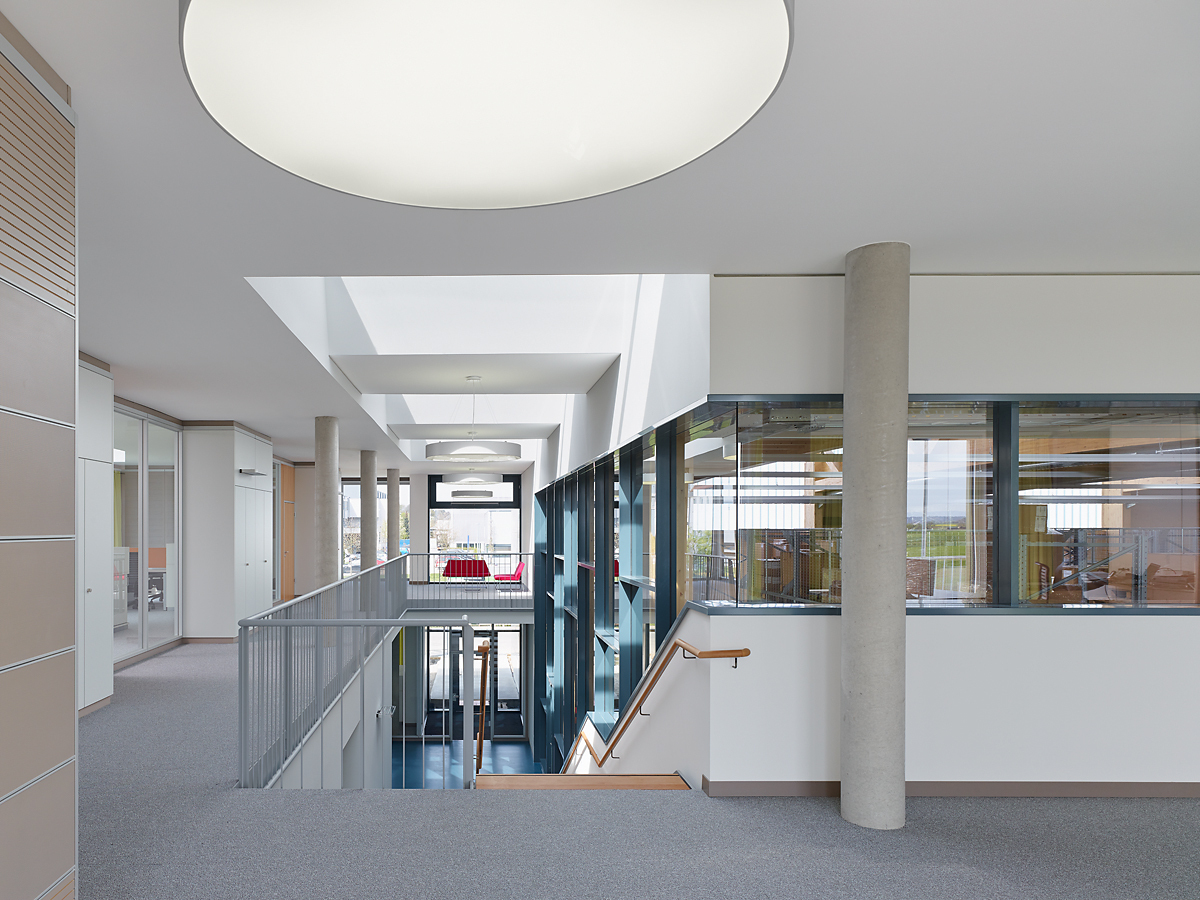 Viel Tageslicht an allen Arbeitsplätzen spart Strom für Beleuchtung und sorgt für eine gute Arbeitsumgebung. Die Steuerung der Beleuchtung über Bewegungsmelder trägt dazu bei.