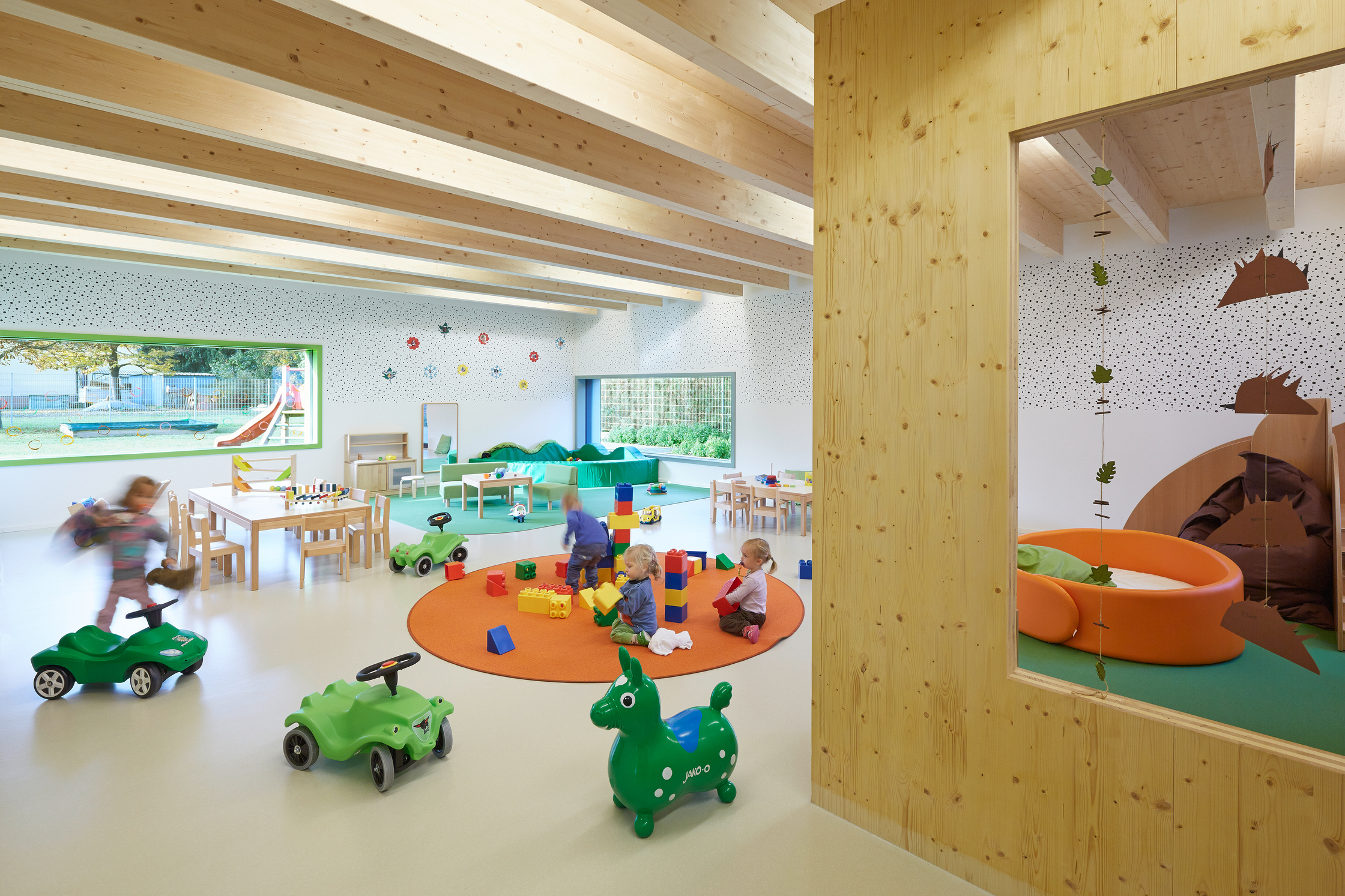 - Holzbau, Überwiegende Verwendung von HFKW-freien Dämmstoffen, Vermeidung von PVC für Fenster, Türen, Vermeidung von PVC im Innenausbau