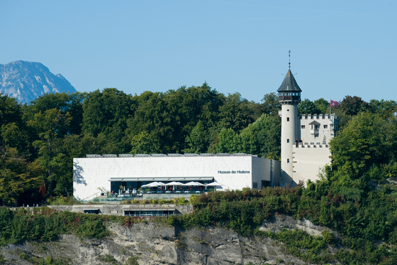 Hinter dem Schleier der Museumslobby herrscht eine andere Atmosphäre. Der Vorhang zeigt sich selbstbewusst als eigenständiges Gebilde und setzt sich von der dahinter liegenden Glasfassade ab. Es entsteht ein schmaler Gang im Aussenraum. Dunkle, höhlenartig gewölbte Betonwände führen zum kleineren Ausstellungsbereich (mit 1300 m²) für zeitgenössische Kunst. Ein Tunnel mit einer schmalen, 32 m langen Rolltreppe führt durch eine kleine, lichtdurchflutete Öffnung ins 2. Obergeschoss. Der fast 4000 m² grosse stützenfreie Raum mit seinen 7 m hohen Decken, in dem flexible Ausstellungswände in einem 3 × 3-Meter-Raster beliebig installiert werden können, wird über 318 nördlich orientierte Oberlichter einheitlich mit Tageslicht beleuchtet (Abbildung).