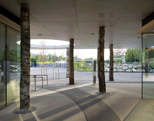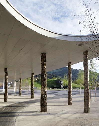 Die vor 20 Jahren nach einem Konzept von André Heller geschaffenen Swarovski Kristallwelten sind in ihrer Mischung aus Kunst und Kultur, Entertainment und Shopping eine der meist besuchten Tourismusattraktionen in Österreich. Anlässlich des 20-jährigen Bestehens wurde diese Erlebniswelt rund um den Riesen auf das Doppelte vergrößert. Neben fünf neuen Wunderkammern und einem weitläufigen Park mit einer Wolke aus 800.000 Kristallen und einem Spiegelwasser als Herzstück (Gestaltung Andy Cao und Xavier Perrot), wurde von s_o_s architekten (Hanno Schlögl, Johann Obermoser und Daniel Süß) ein neues Eingangsgebäude errichtet und der Store komplett neu gestaltet. Der Zugangstunnel zum Store wurde vom Büro Snøhetta konzipiert, das außerdem für ein Restaurant und einen Spielturm mit Spielplatz verantwortlich zeichnet. Der von s_o_s architekten gestaltete Eingangsbereich greift das von CAO PERROT im Masterplan vorgegebene Thema des „weißen Waldes“ mit einem von Birkenstämmen getragenen, weit ausladendem Betondach auf. Unter dem 1.800 qm großen Dach entstand ein großräumiger Ankunftsbereich mit Kassen, Wartezonen, Souvenir Shop und Sanitärbereichen, die in zwei zentral angeordneten, rundum verglasten Kuben untergebracht sind. Reduziert in Materialität und Form hält sich der Bau bewusst zurück, um nicht in Konkurrenz zu den eigentlichen Attraktionen der Kristallwelten zu treten. Der Freiraum unter dem Dach geht in einen weitläufigen, großen Platz über, an dessen östlichem Ende das neue Daniels. Café & Restaurant liegt. Im Kontrast zur dunklen Innenwelt der Wunderkammern im Riesen konzipierten Snøhetta einen lichtdurchfluteten, organisch geformten Pavillon, in dessen Inneren Decken, Wände und Böden fließend ineinander übergehen. Abgetrennt vom eigentlichen Restaurant ist der Service-Bereich in einem eigenen, einfach gestalteten Baukörper untergebracht, ein kupferumhüllter, polygoner Verbindungstrakt verbindet die beiden Bauteile. Mit dem Spielturm und der davor liegenden Spiellandschaft erhalten v. a. die jungen BesucherInnen eine neue Attraktion. Der 20 m hohe Turm bietet als vertikaler Spielplatz auf mehreren Ebenen eine Vielzahl an Spielmöglichkeiten, bei denen das physische Erleben im Mittelpunkt steht – vom Verstecken und Kriechen über Klettern und Rutschen bis zum Schaukeln und Springen. Die mittels parametrischer Methode realisierte Fassade aus 160 unterschiedlichen Glaspaneelen bietet Einblick in das bunte und bewegte Innenleben und ist in ihrer facettierten Form zugleich Anspielung auf das allgegenwärtige Hauptthema Kristall. Im Inneren des Riesen führt ein wiederum von Snøhetta gestalteter Tunnel mit einer multimedialen Licht- und Toninstallation in den neuen Store, für den s_o_s architekten eine abstrakte Landschaft in die bestehende Halle setzten. Ausgehend von der Idee eines gewundenen Flusses gliedern weiß glänzende Vitrinen und Elemente aus edlem Holz den Raum in atmosphärisch aufgeladene Bereiche, die von einem zwischen hell und dunkel changierendem „Himmel“ überwölbt sind. (Text: Claudia Wedekind)