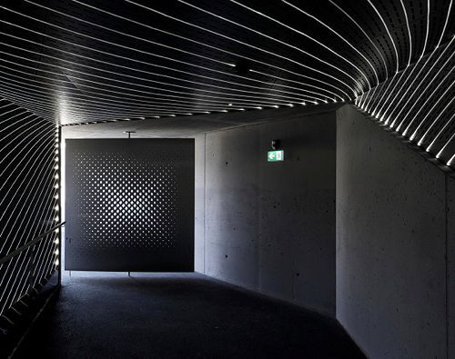 Die vor 20 Jahren nach einem Konzept von André Heller geschaffenen Swarovski Kristallwelten sind in ihrer Mischung aus Kunst und Kultur, Entertainment und Shopping eine der meist besuchten Tourismusattraktionen in Österreich. Anlässlich des 20-jährigen Bestehens wurde diese Erlebniswelt rund um den Riesen auf das Doppelte vergrößert. Neben fünf neuen Wunderkammern und einem weitläufigen Park mit einer Wolke aus 800.000 Kristallen und einem Spiegelwasser als Herzstück (Gestaltung Andy Cao und Xavier Perrot), wurde von s_o_s architekten (Hanno Schlögl, Johann Obermoser und Daniel Süß) ein neues Eingangsgebäude errichtet und der Store komplett neu gestaltet. Der Zugangstunnel zum Store wurde vom Büro Snøhetta konzipiert, das außerdem für ein Restaurant und einen Spielturm mit Spielplatz verantwortlich zeichnet. Der von s_o_s architekten gestaltete Eingangsbereich greift das von CAO PERROT im Masterplan vorgegebene Thema des „weißen Waldes“ mit einem von Birkenstämmen getragenen, weit ausladendem Betondach auf. Unter dem 1.800 qm großen Dach entstand ein großräumiger Ankunftsbereich mit Kassen, Wartezonen, Souvenir Shop und Sanitärbereichen, die in zwei zentral angeordneten, rundum verglasten Kuben untergebracht sind. Reduziert in Materialität und Form hält sich der Bau bewusst zurück, um nicht in Konkurrenz zu den eigentlichen Attraktionen der Kristallwelten zu treten. Der Freiraum unter dem Dach geht in einen weitläufigen, großen Platz über, an dessen östlichem Ende das neue Daniels. Café & Restaurant liegt. Im Kontrast zur dunklen Innenwelt der Wunderkammern im Riesen konzipierten Snøhetta einen lichtdurchfluteten, organisch geformten Pavillon, in dessen Inneren Decken, Wände und Böden fließend ineinander übergehen. Abgetrennt vom eigentlichen Restaurant ist der Service-Bereich in einem eigenen, einfach gestalteten Baukörper untergebracht, ein kupferumhüllter, polygoner Verbindungstrakt verbindet die beiden Bauteile. Mit dem Spielturm und der davor liegenden Spiellandschaft erhalten v. a. die jungen BesucherInnen eine neue Attraktion. Der 20 m hohe Turm bietet als vertikaler Spielplatz auf mehreren Ebenen eine Vielzahl an Spielmöglichkeiten, bei denen das physische Erleben im Mittelpunkt steht – vom Verstecken und Kriechen über Klettern und Rutschen bis zum Schaukeln und Springen. Die mittels parametrischer Methode realisierte Fassade aus 160 unterschiedlichen Glaspaneelen bietet Einblick in das bunte und bewegte Innenleben und ist in ihrer facettierten Form zugleich Anspielung auf das allgegenwärtige Hauptthema Kristall. Im Inneren des Riesen führt ein wiederum von Snøhetta gestalteter Tunnel mit einer multimedialen Licht- und Toninstallation in den neuen Store, für den s_o_s architekten eine abstrakte Landschaft in die bestehende Halle setzten. Ausgehend von der Idee eines gewundenen Flusses gliedern weiß glänzende Vitrinen und Elemente aus edlem Holz den Raum in atmosphärisch aufgeladene Bereiche, die von einem zwischen hell und dunkel changierendem „Himmel“ überwölbt sind. (Text: Claudia Wedekind)