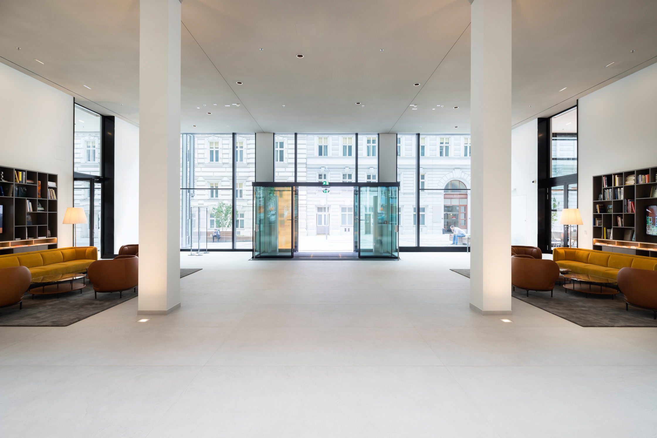 Anstatt das frühere Bestandsgebäude einfach abzureißen, wurde das ehemalige Rechenzentrum der Stadt Wien in mehreren Etappen zurückgebaut. Gemeinsam mit einerReUse-Plattform wurden sämtliche wiederverwertbare Bauteile, inklusive Möbel und Innenausstattung, gezielt einer neuen Funktion zugeführt. Letztlich konnten rund 90 Prozent des Gebäudes über eine Aufbereitungsanlage als Sekundärrohstoff in den Stoffkreislauf zurückgeführt werden.