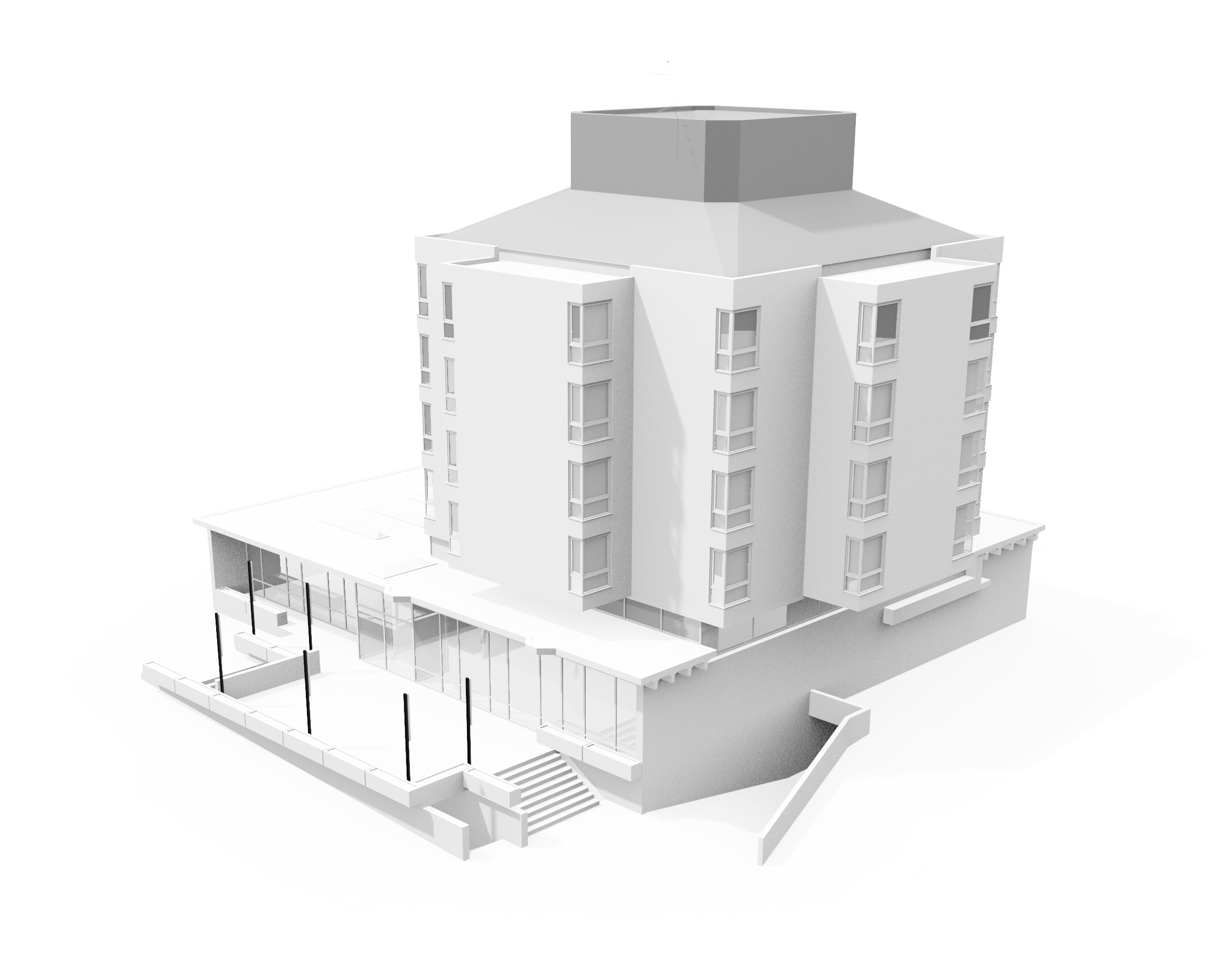 Rückblende in die 1970er-Jahre. Verwackelte Super-8-Bilder, von einem Hobbyfilmer festgehalten. Rauchende Bauarbeiter gießen Beton in die Schalung, neben dem Kirchturm wächst ein Rohbau in die Höhe. Auf dem Gerüst strahlt ein agiler Herr mittleren Alters kurz in die Kamera. Er heißt Ilja Arnautović und ist der Architekt des Gebäudes. 1976 ist das Hotel fertig, im März 1977 wird es festlich eröffnet, auch hier war die Kamera dabei: Köche stehen mit rosig-properen Gesichtern in schüchternem Stolz hinter Buffets mit fettem Siebzigerjahre-Essen.