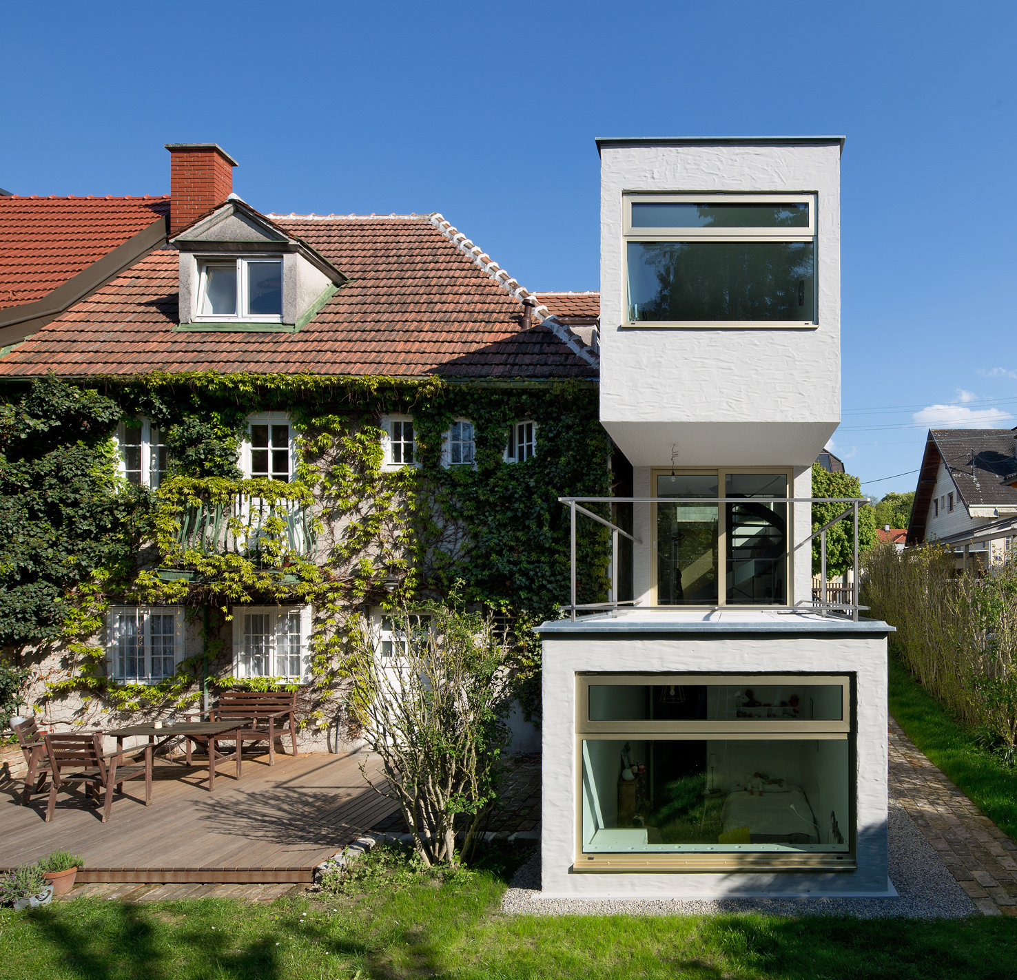 Minimierung des Grund- und Bodenbedarfs, alle Anschlüsse für Photovoltaik bauseits vorbereitet. Austausch der bestehenden Therme in ein Gasbrennwertgerät, gefahrlose Rückführung aller verwendeter Materialien, geringe Transportkosten/-wege der Bauteile (ausführenden Firmen aus der unmittelbaren Umgebung).