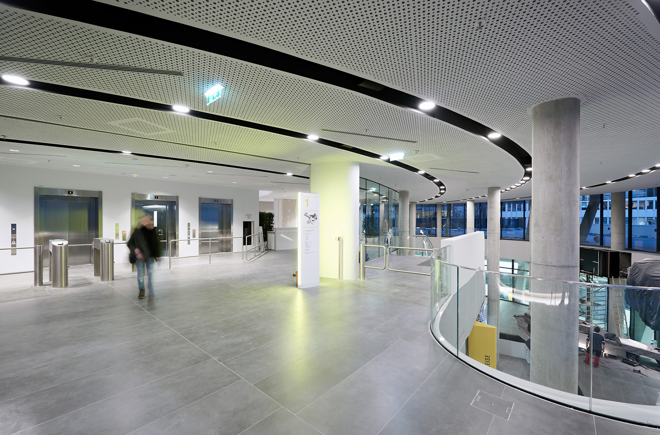 So erweist sich ein Gebäude, das auf den ersten Blick beinahe aus der Kurve zu fliegen droht, als durchdachtes Gesamtwerk aus Fahrwerk, Chassis und Komfort, das auch im letzten Winkel noch die Kurve kriegt, wie ein Rad, das sich so schnell dreht, dass es wieder statisch wirkt. Und ganz en passant liefert es eine schlüssige Begründung dafür, warum Architektur für eine Unternehmenszentrale viel mehr sein kann als ein gebautes Logo.