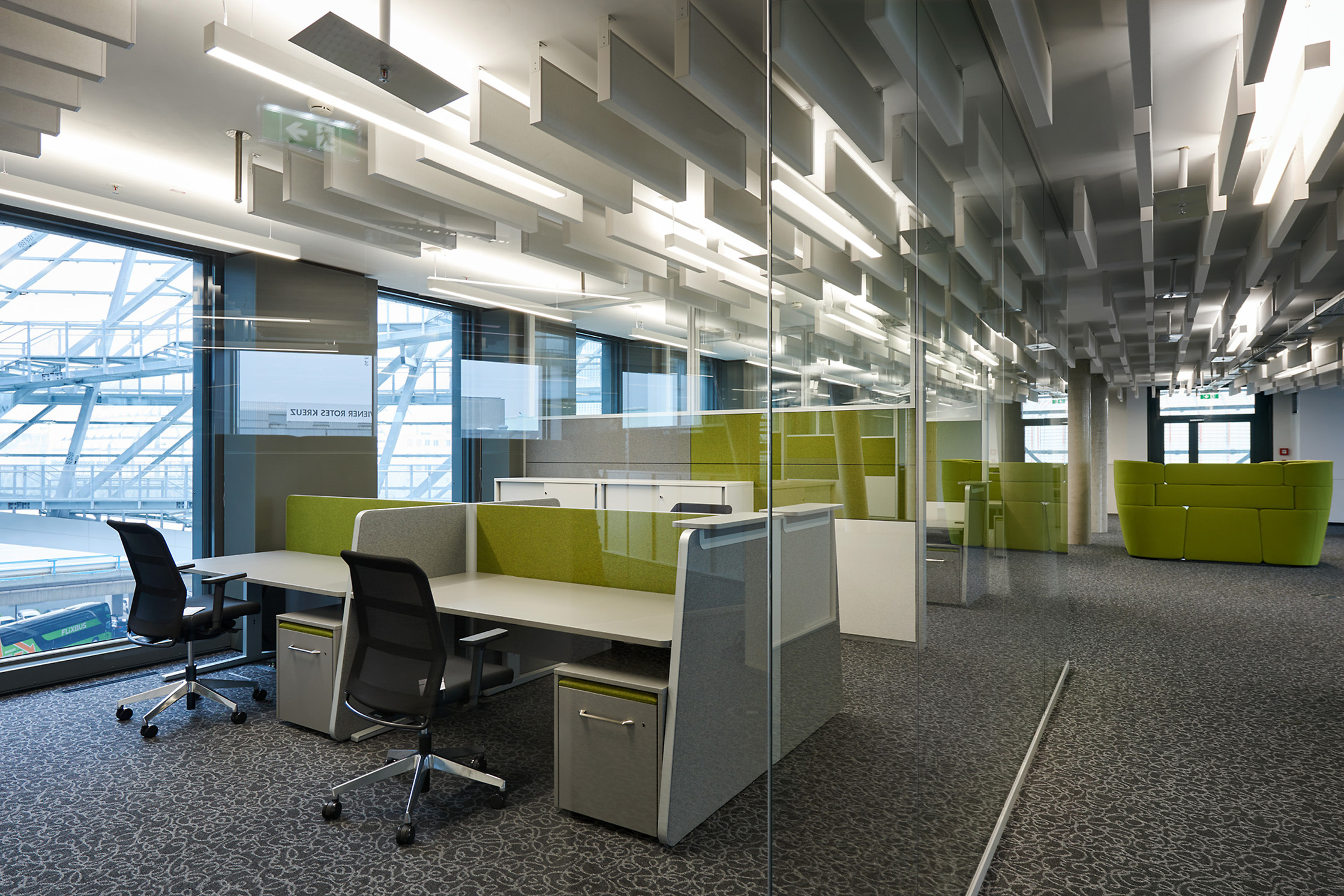 - Stahl-Glaskonstruktion, Überwiegende Verwendung von HFKW-freien Dämmstoffen, Stahlbeton