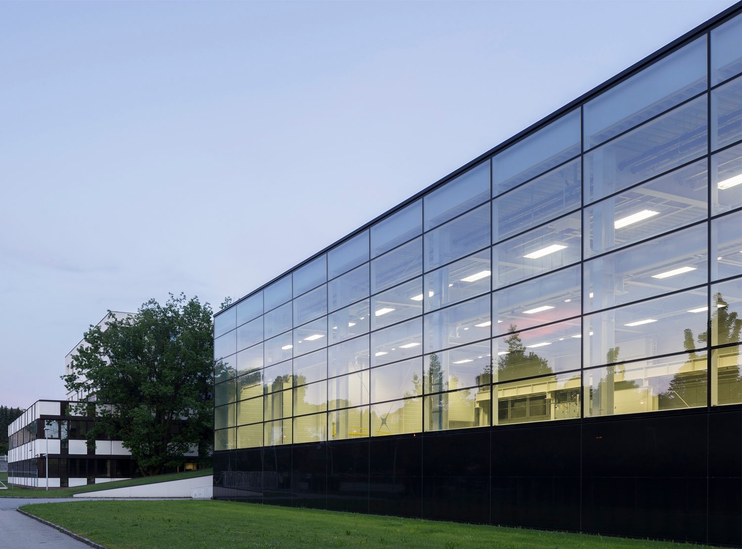 Zum Glück gibt es auch Unternehmen, die dem qualitätsvollen Bauen einen hohen Rang einräumen. Für die Firma Engel mit ihrem Stammhaus im oberösterreichischen Schwertberg etwa ist die Planung der Firmengebäude auf gestalterisch hohem Niveau Teil der Unternehmenskultur. Die Repräsentation nach außen, ein Anliegen, das auch weniger Architektur-affinen Entscheidungsträgern geläufig wäre, steht hier nicht im Vordergrund. Vielmehr halten die Eigentümer des zu hundert Prozent im Familienbesitz stehenden Weltmarktführers für Spritzgießmaschinen nun schon in der vierten Generation an der Überzeugung fest, dass Architektur in der Lage ist, ein ebenso tragfähiges wie inspirierendes Umfeld für erfolgreiches Arbeiten zu schaffen. Der jeweilige Zugang zum konkreten Bauvorhaben – Engel hat neun Produktionswerke in Europa, Nordamerika und Asien sowie zahlreiche Niederlassungen weltweit – ist stets ein anderer.