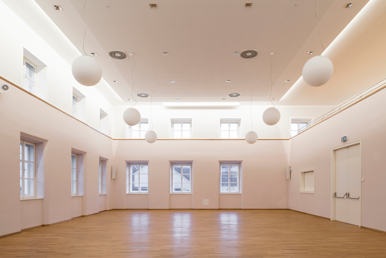 Im Leben der Pfarre allerdings, deren kulturelles Engagement als Bauherrschaft an dieser Stelle hervorgehoben werden soll, ist der Wandel zum Besseren täglich unmittelbar präsent: Fundamente, erdberührte Böden und aufgehende Mauern wurden trockengelegt, eine höherwertige Nutzung der zum Teil aus dem Mittelalter stammenden Räume des untersten Geschoßes somit möglich. Sämtliche Fenster wurden durch dreifach verglaste Kastenfenster ersetzt. Eine innen liegende, mineralische Dämmung der Außenwände schont die denkmalgeschützte Fassade. Geheizt wird mit Erdwärme, nicht mehr mit Öl. Die Wohnungen für Pfarrer und Kaplan wurden auf zeitgemäßen Stand gebracht. Sie sind nun, wie alle anderen Bereiche des Pfarrzentrums – der Mehrzwecksaal, die Büros und auch die verschiedenen Gruppenräume – ohne gegenseitige Störung unabhängig voneinander zugänglich. Nach Einebnung der Niveausprünge innerhalb der Geschoße erschließt überdies ein Aufzug die drei Ebenen des Pfarrzentrums barrierefrei.