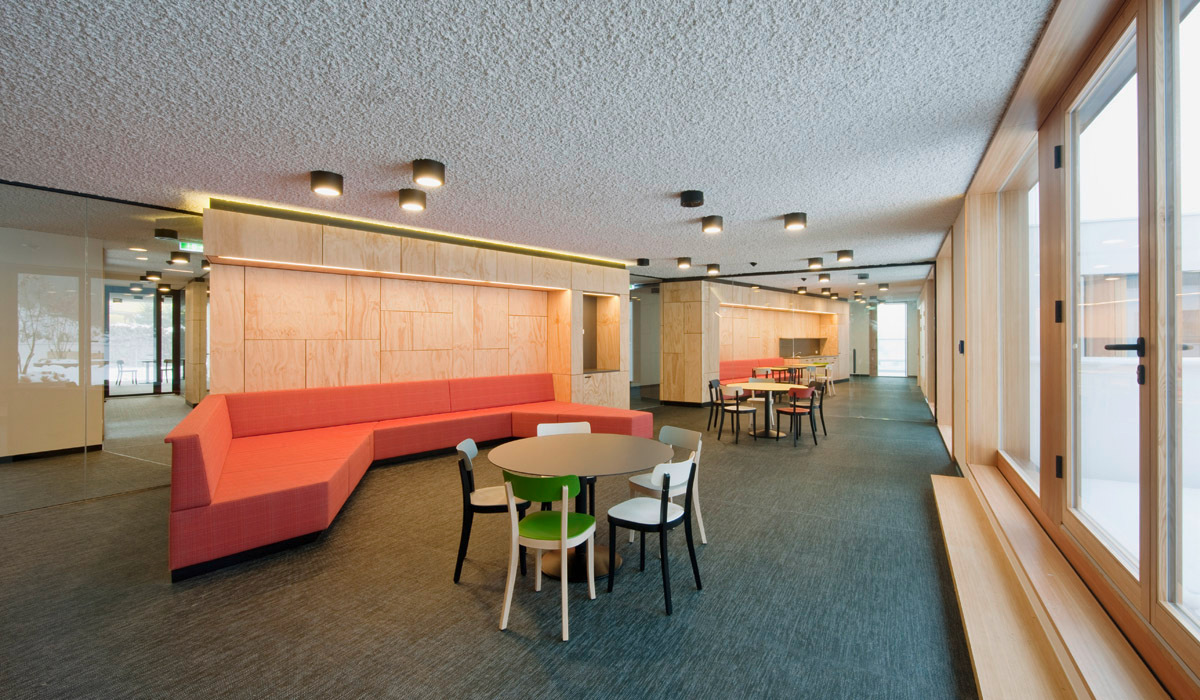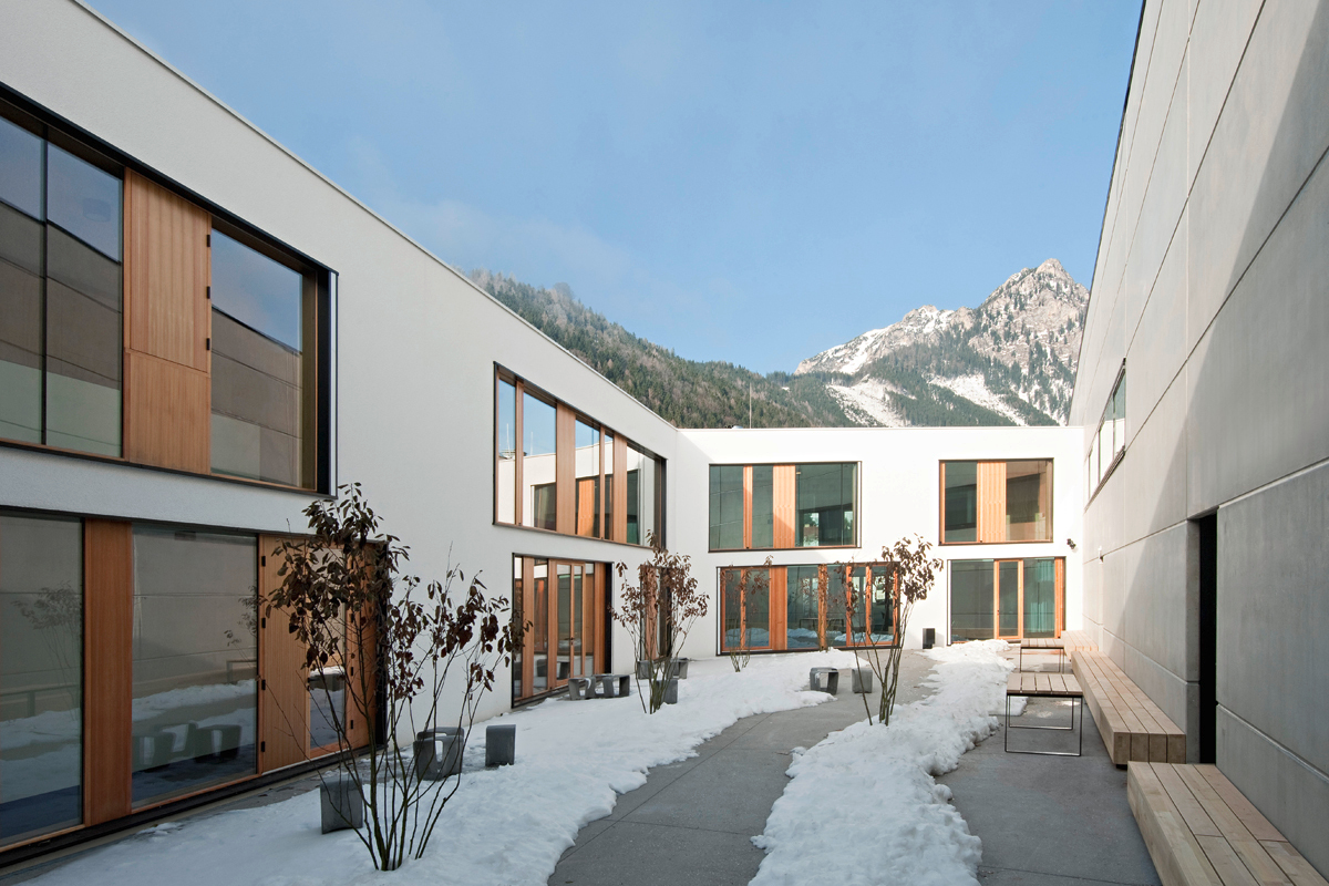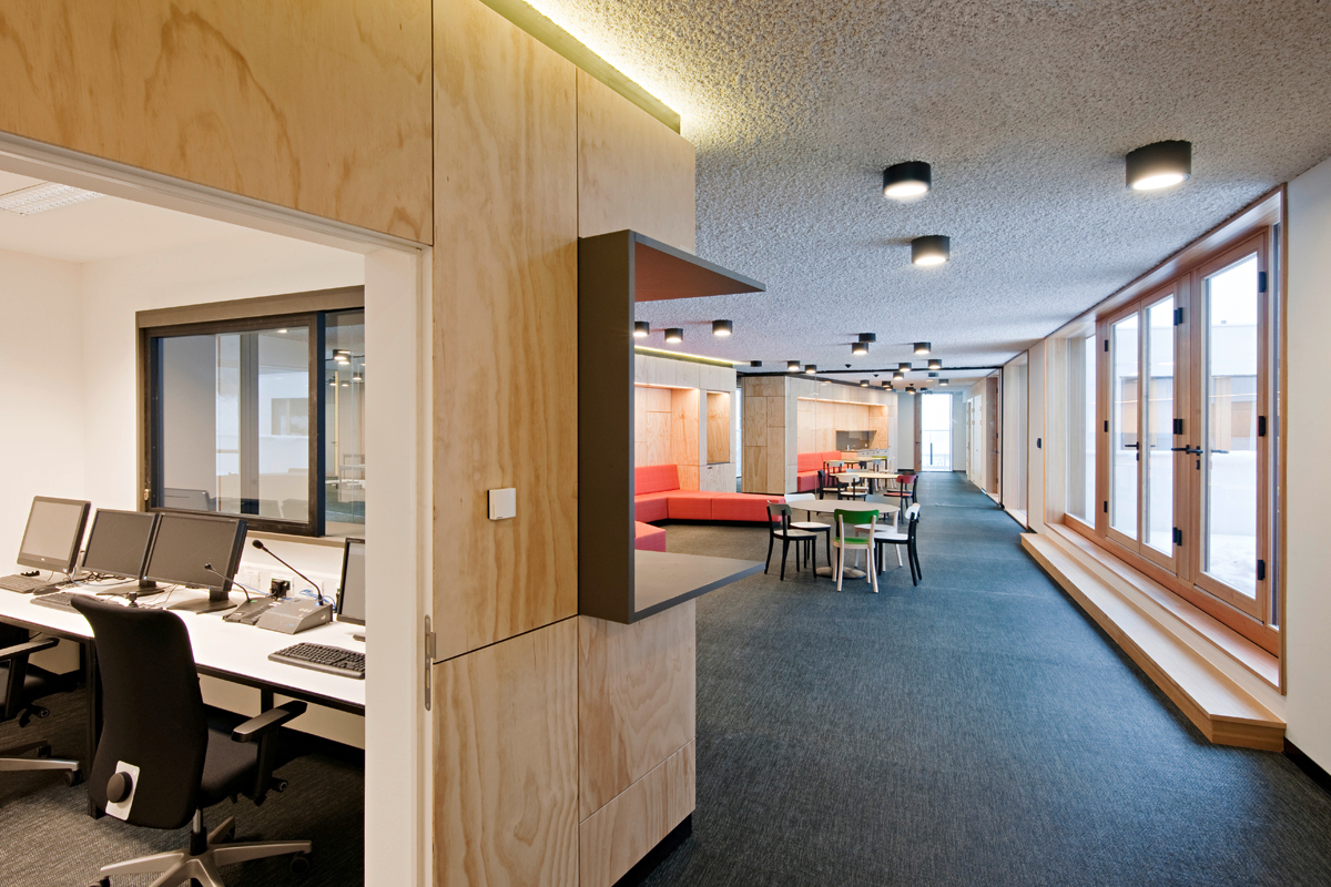 Das mögen sich auch jene 42 Teilnehmer des international ausgeschriebenen Wettbewerbs gedacht haben, die 2010 ein Projekt für Vordernberg abgaben. Zum Sieger gekürt und zur Realisierung vorgeschlagen wurde der Entwurf von Sue Architekten, einer jungen Wiener Architektengruppe, die mit einem mit dem Bauherrenpreis ausgezeichneten Amtshaus für das oberösterreichische Ottensheim bekannt wurde. Es ist glaubhaft, wenn die Architekten betonen, mit dem Bundesministerium für Inneres als Auslober und der Bundesimmobiliengesellschaft als Bauherr bauliche Standards der Verwahrung und Sicherung immer wieder diskursiv hinterfragt und sich nach Kräften bemüht zu haben, starre Bilder aufzubrechen und in eine menschenwürdigere Form zu bringen. So ist es ihnen gelungen, die Gitter vor den Fenstern wegzulassen, die noch in der Ausschreibung zum Wettbewerb vorgesehen waren. Anstelle von herkömmlichen Fensterflügeln gibt es nun raumhohe, aber handrückenschmale Lüftungsflügel aus Holz, die zwischen fix verglasten Scheiben sitzen.