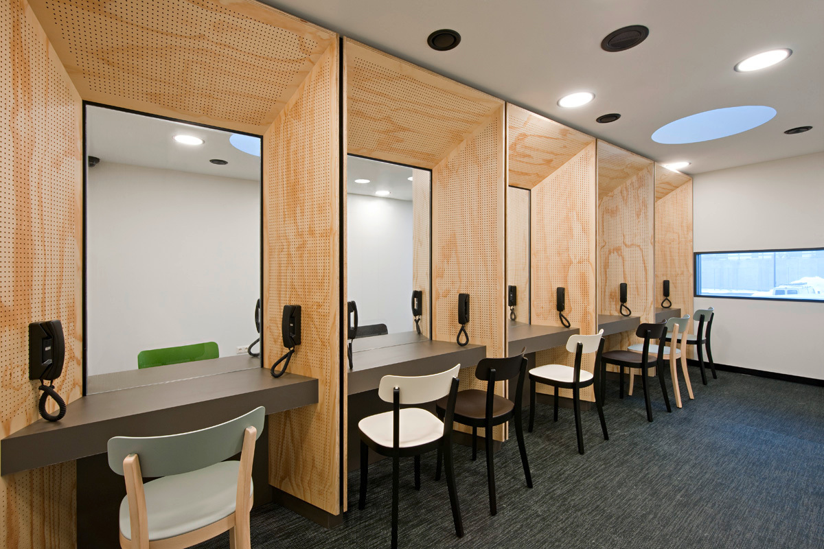 Eine Einrichtung müsste rückgebaut werden: die Kommunikation über eine Reihe von Glasscheiben mit Telefonhörern als eine von drei gebauten Varianten des Besucherkontakts. Sie widerspricht der Beteuerung, man sei kein Gefängnis, ist schlicht entwürdigend und wurde dennoch installiert. Akzeptable Besucherräume sind ein kleiner für Einzelgespräche und ein größerer mit mehreren Tischen und Kaffeeautomat.