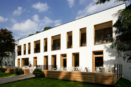 Der Eingangsbaukörper zeigt selbstbewusst das Frauenhaus an und ist gleichzeitig Sicherheitsschleuse.