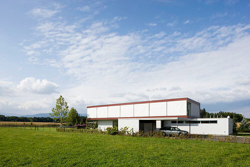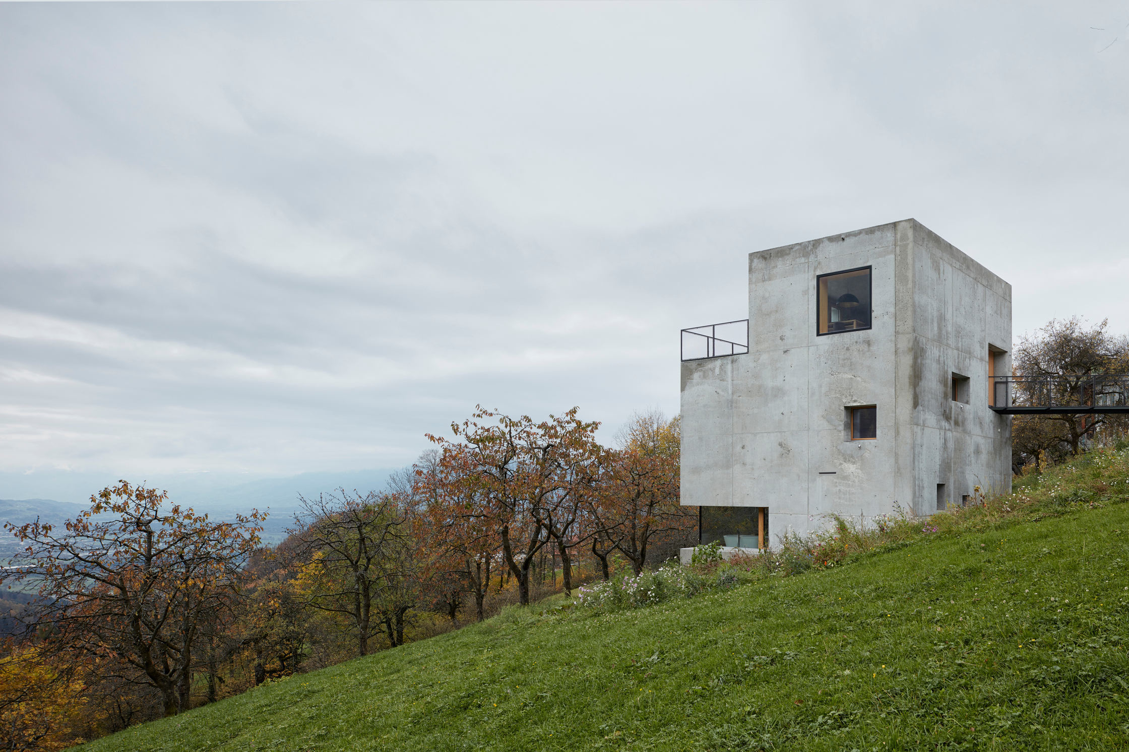 Die bewusst analog konzipierte Haustechnik nutzt Sonne und Holz als Energielieferant. Die Beheizung des Hauses erfolgt mittels Betonkernaktivierung: Heizleitungen wurden vor dem Betonieren in die Deckenschalung eingelegt. 16m² Vakuumröhrenkollektoren am Dach liefern die Heizenergie an einen Pufferspeicher. Der Grundofen mit 5 kW ergänzt das System in kalten und sonnenarmen Jahreszeiten. Die Masse und Trägheit der massiven Außenwände absorbiert die Sonneneinstrahlung und sorgt für ein gleichmäßiges, angenehmes Raumklima.