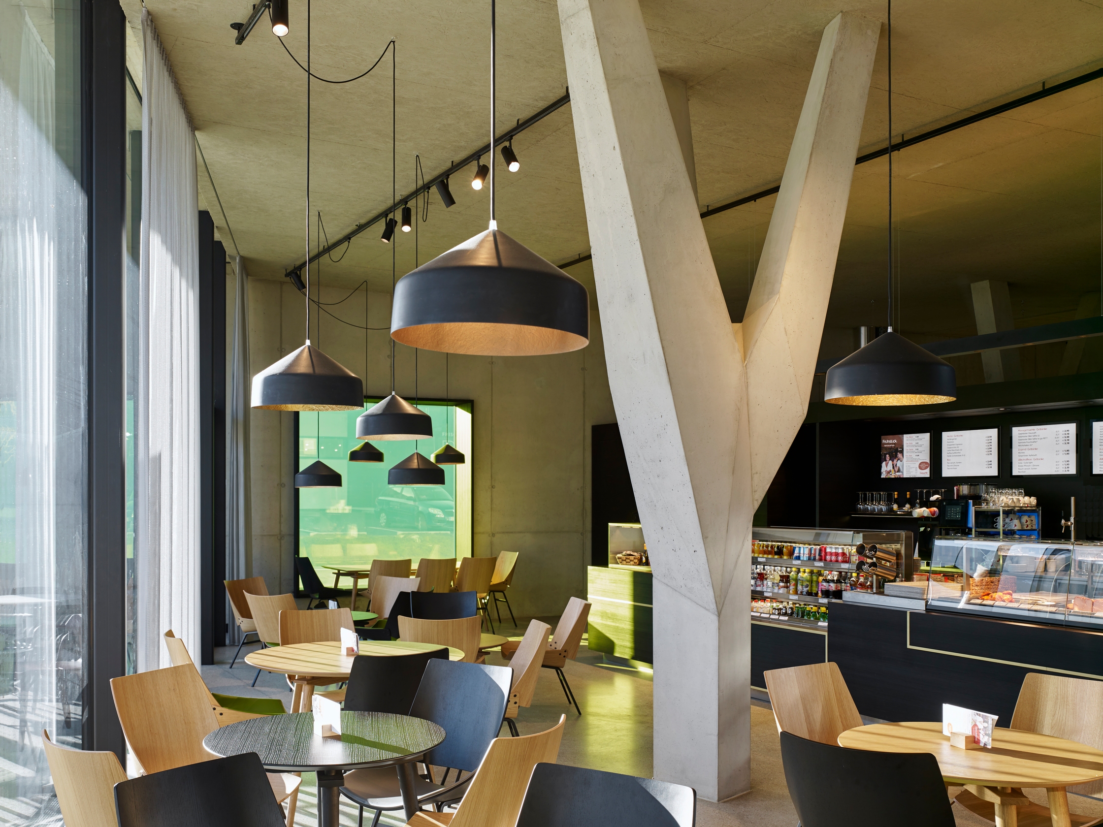 Das Gebäude ist als Passivhaus ausgeführt, es wird ausschließlich mit der Abwärme der Kühlung geheizt. Die Kühlung erfolgt über natürliche Nachtlüftung. Die Glasflächen und das Vordach sind auf den Sonnenverlauf hin optimiert, das Dach ist vollflächig mit Photovoltaik ausgestattet. Akkus speichern den Solarstrom zur Erhöhung des Ertrages und Verbesserung der Versorgungssicherheit.