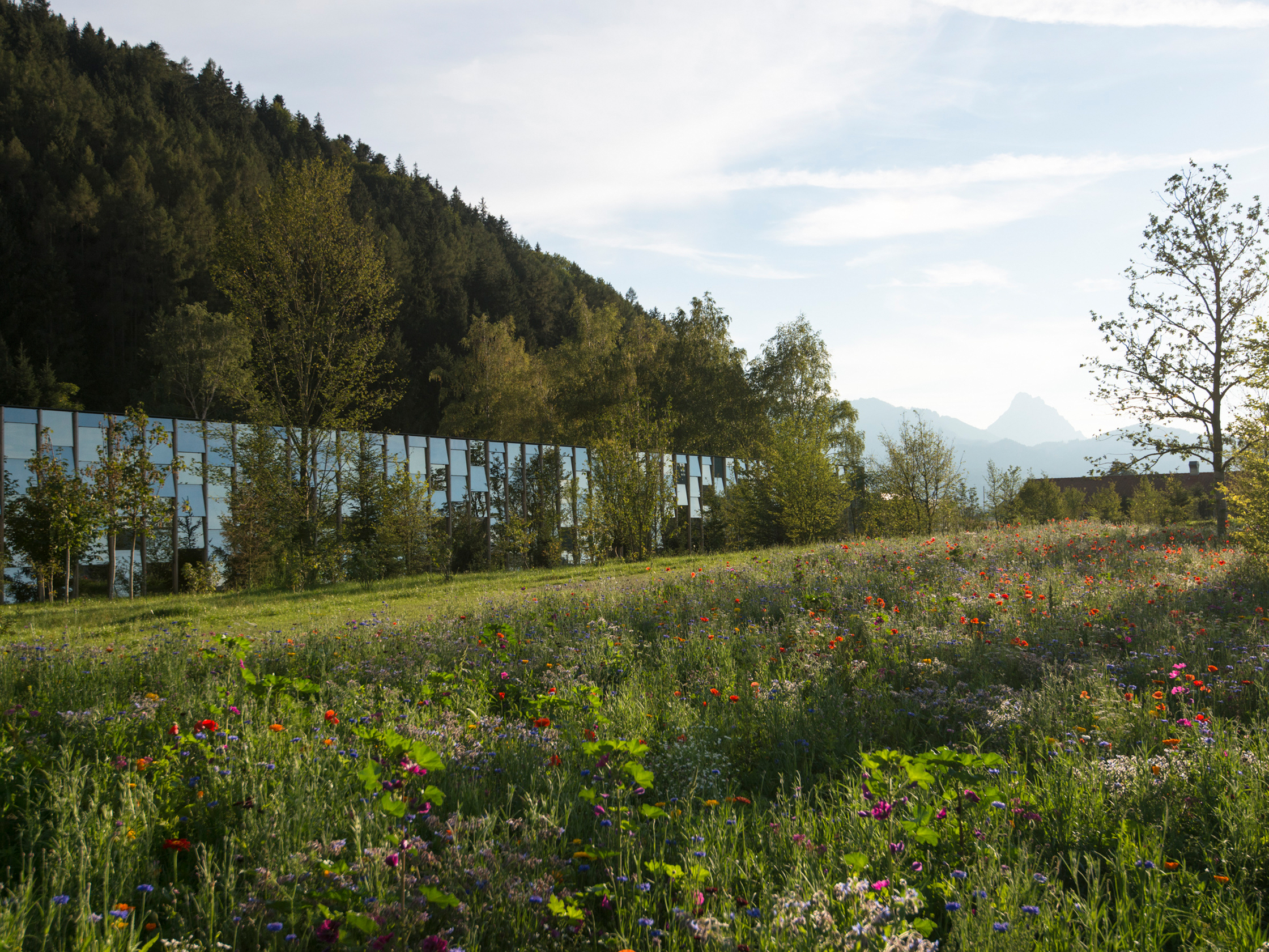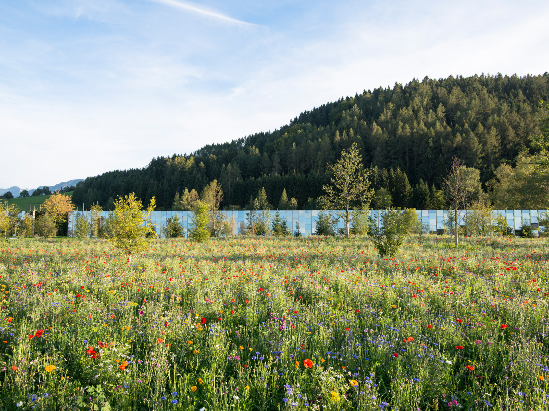 Die Grüne-Erde-Welt, ein Kooperationsprojekt von Klaus Klaas Loenhart und dem Linzer Architekturbüro Arkade, wurde mit dem Oberösterreichischen Holzbaupreis 2019 ausgezeichnet. Mit einem Baubudget von rund 1100 Euro pro Quadratmeter ist es nicht nur gelungen, die Werte des Unternehmens, die sich sonst in flauschigen Alpakadecken, kirschkerngefüllten Kissen und handgestreichelten Massivholzmöbeln manifestieren, auf den Maßstab XXL zu übertragen (alles gutes Marketing, keine Frage), sondern auch Wertschätzung gegenüber Mensch und Natur zur Geltung und zum Ausdruck zu bringen.