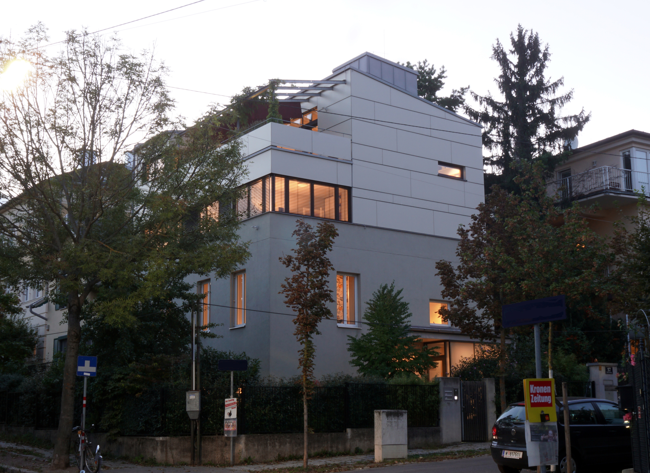 Generell wurden überall Heizkörper verwendet mit Ausnahme des Erdgeschoßes (Fußbodenheizung) und der Unterflurkonvektoren im Dachgeschoß (vor dem großen Glaselement).