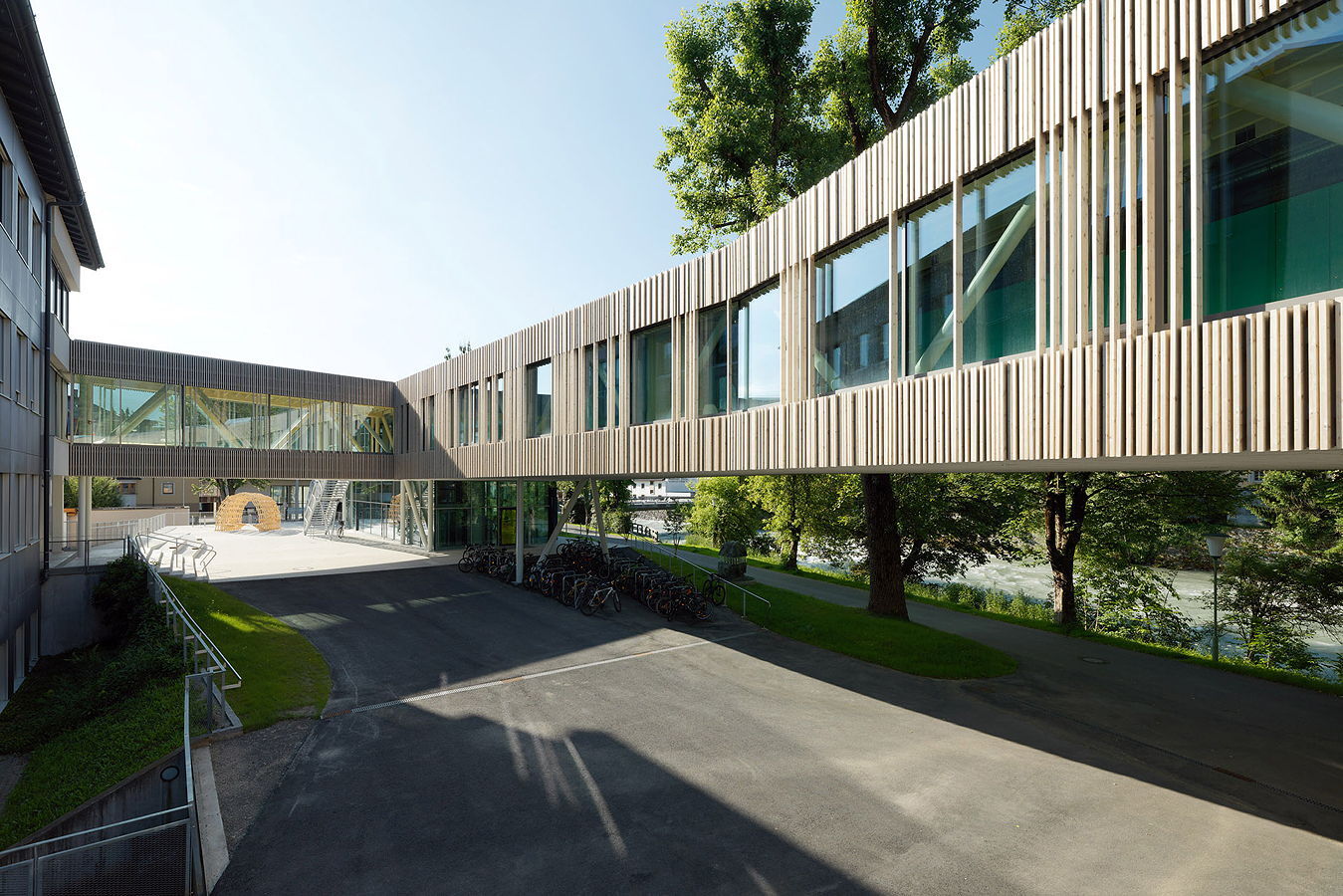 Manchmal geht es schnell: Im Februar 2016 trat die Jury des Architekturwettbewerbs für den Campus Technik Lienz zu ihrer entscheidenden Sitzung zusammen; exakt zwei Jahre später, im Februar 2018, fand die Eröffnung statt. Der Campus kombiniert verschiedene Bildungseinrichtungen an einem Standort: eine Tiroler Fachberufsschule, eine private Höhere Technische Lehranstalt sowie eine Außenstelle der Leopold-Franzens-Universität in Innsbruck und der Universität für Medizinische Informatik und Technik in Hall in Tirol.