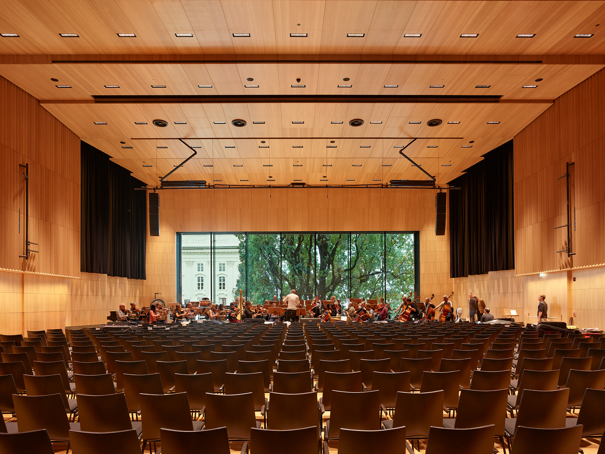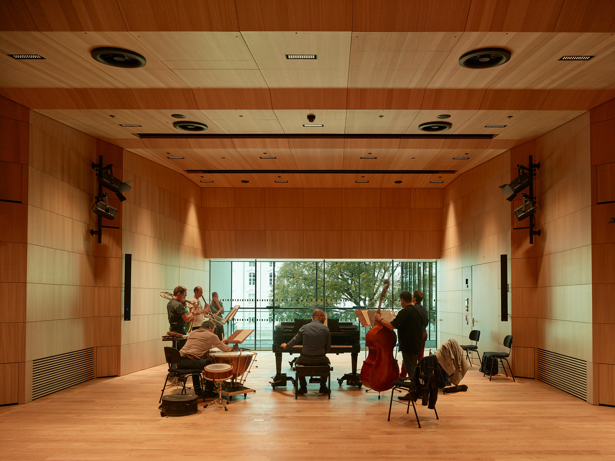 Im Gegensatz zu den Stadtsälen, die die Kammerspiele sowie einen Probenraum für die Symphoniker beherbergten, handelt es sich beim neuen Haus der Musik um einen multifunktionalen Hybrid, in dem ein knappes Dutzend Institutionen Einzug gehalten hat, die bislang über die ganze Stadt verteilt waren.