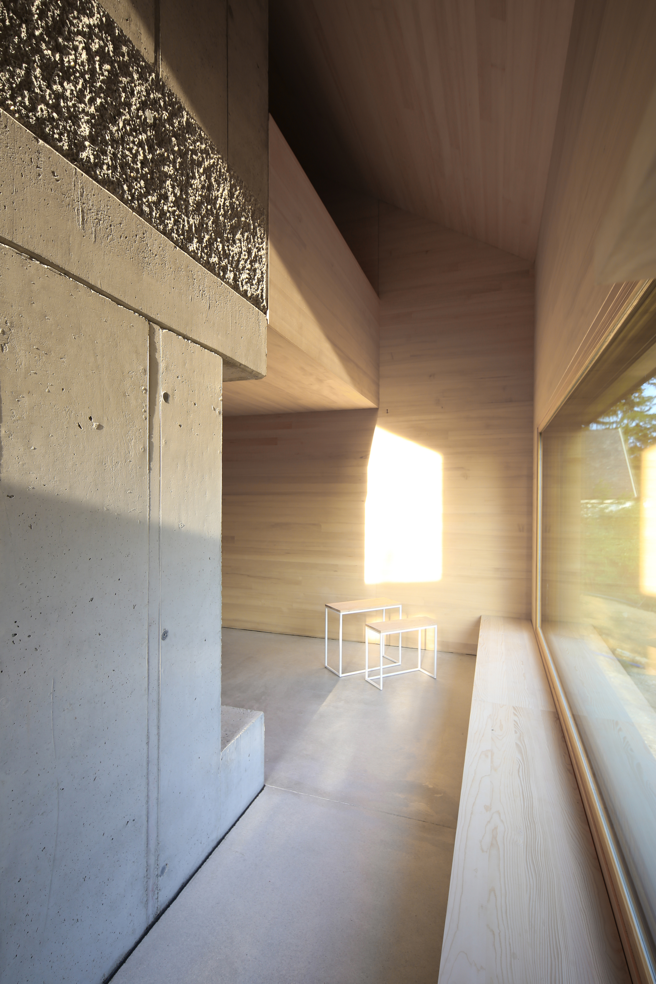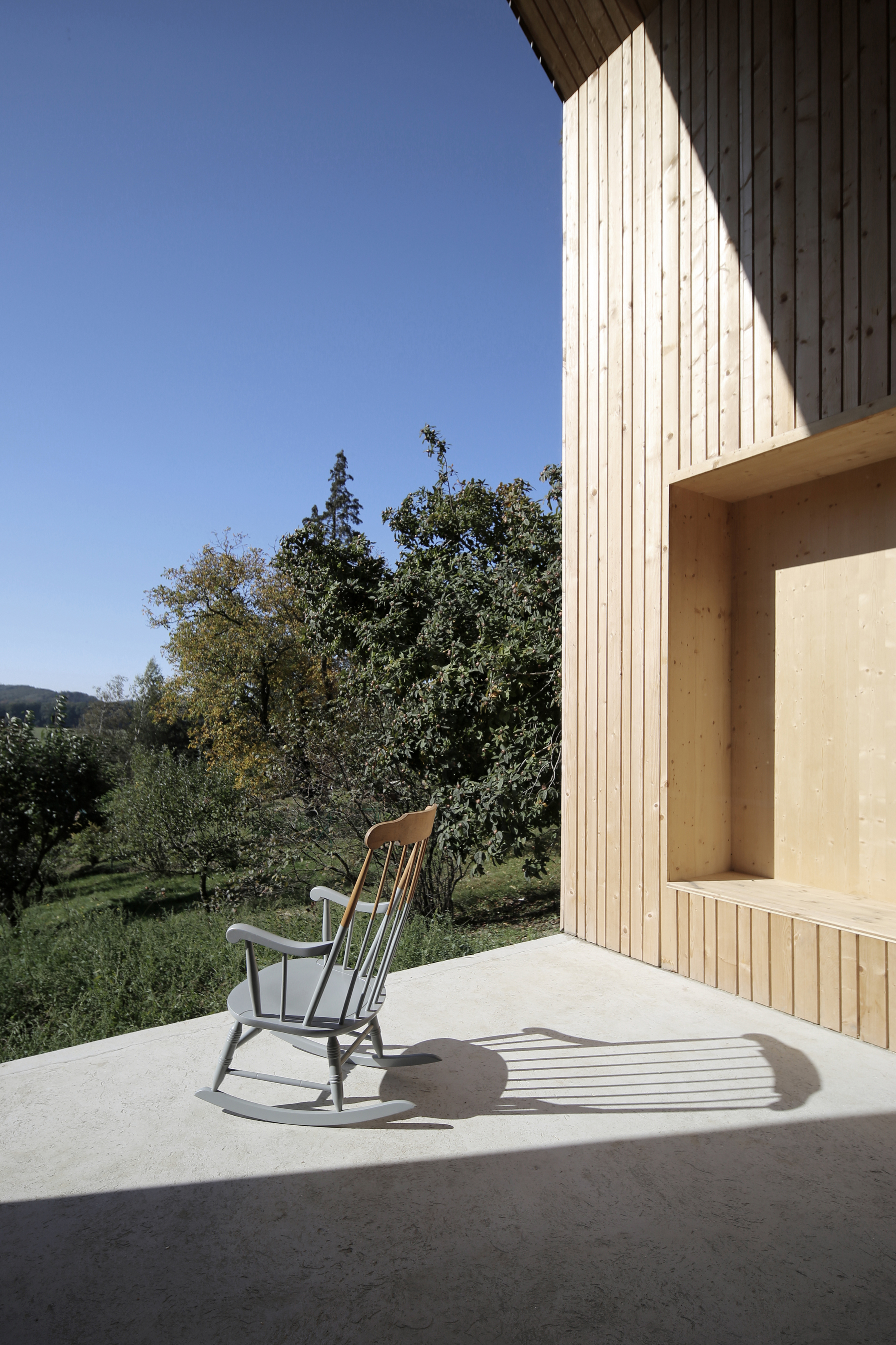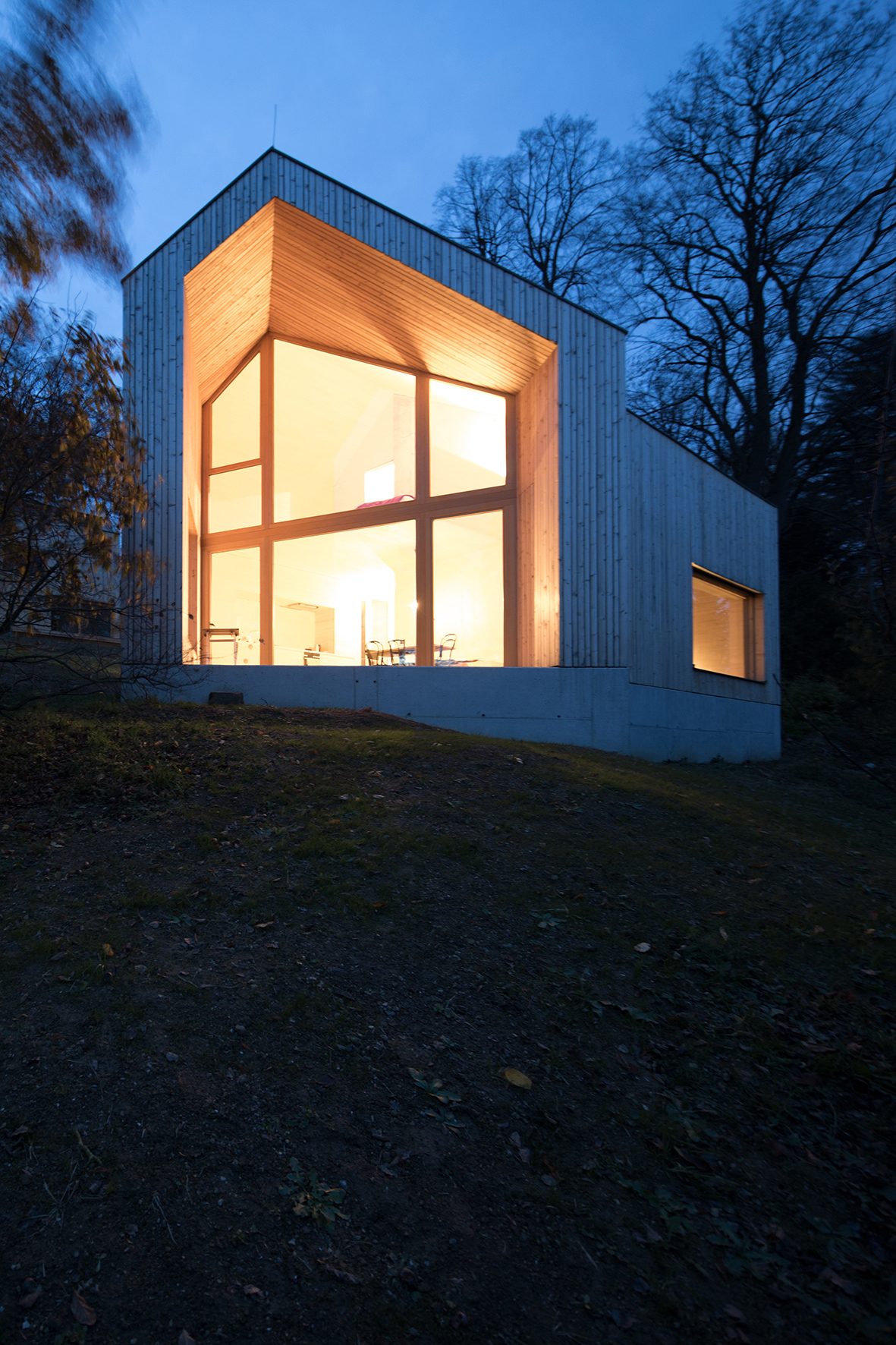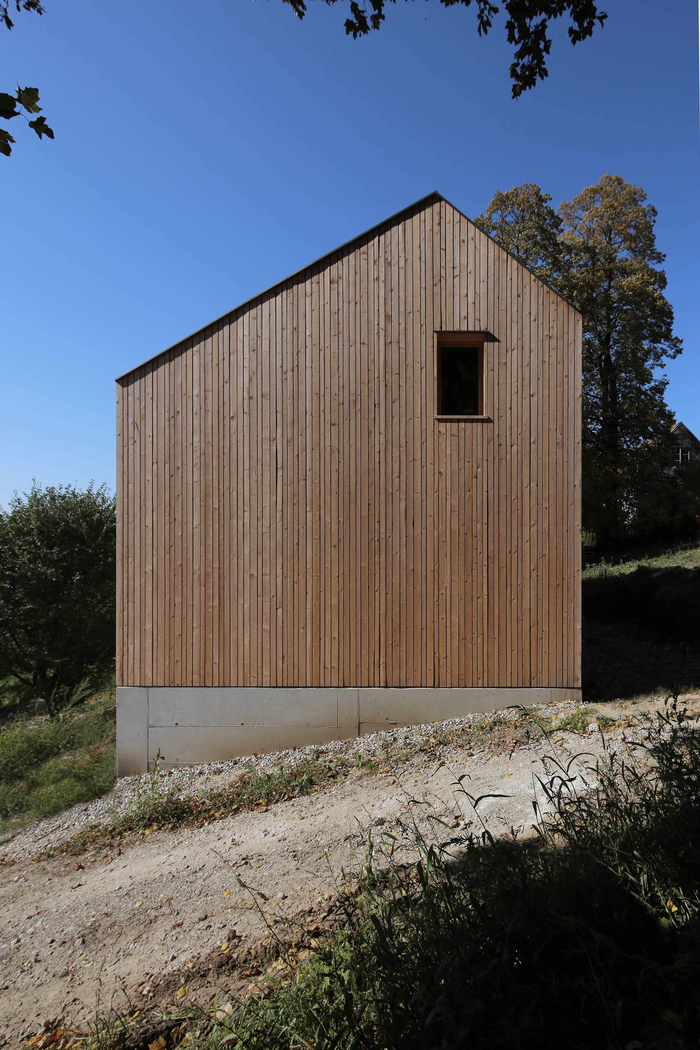 Durch die Einbettung ins Gelände konnten die Geländeveränderungen zudem minimiert werden und der Holzbau konstruktiv mit nötigem Abstand vom Terrain platziert werden.