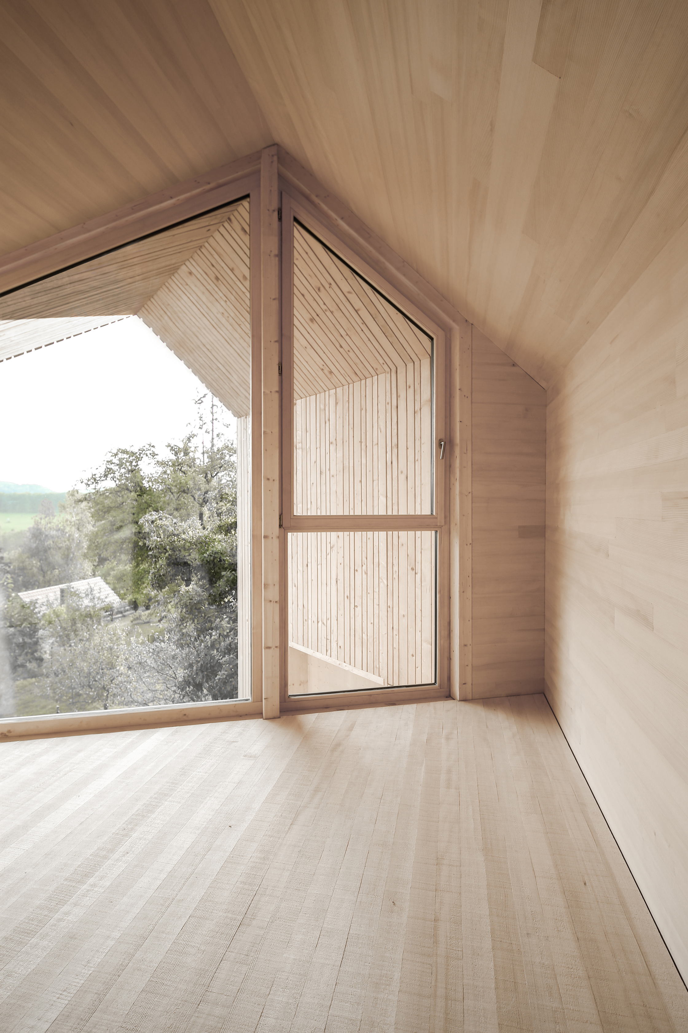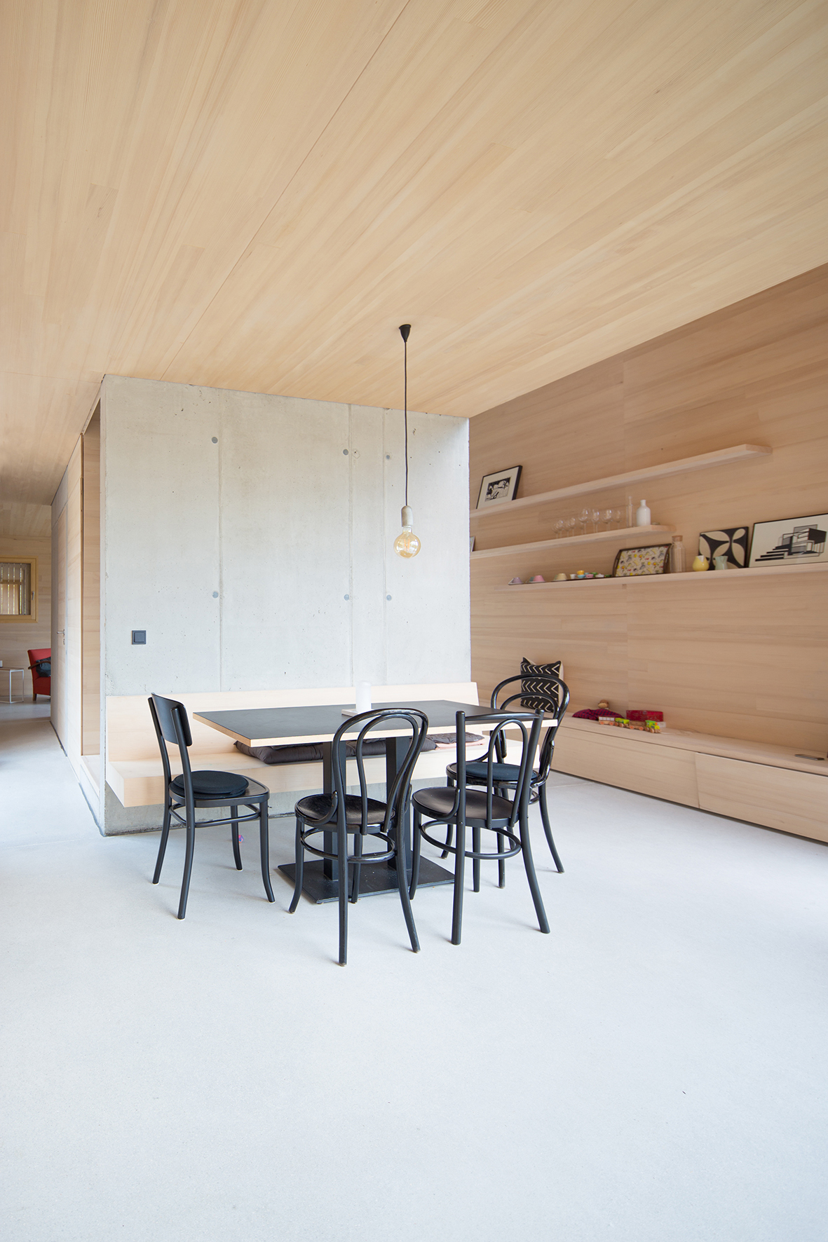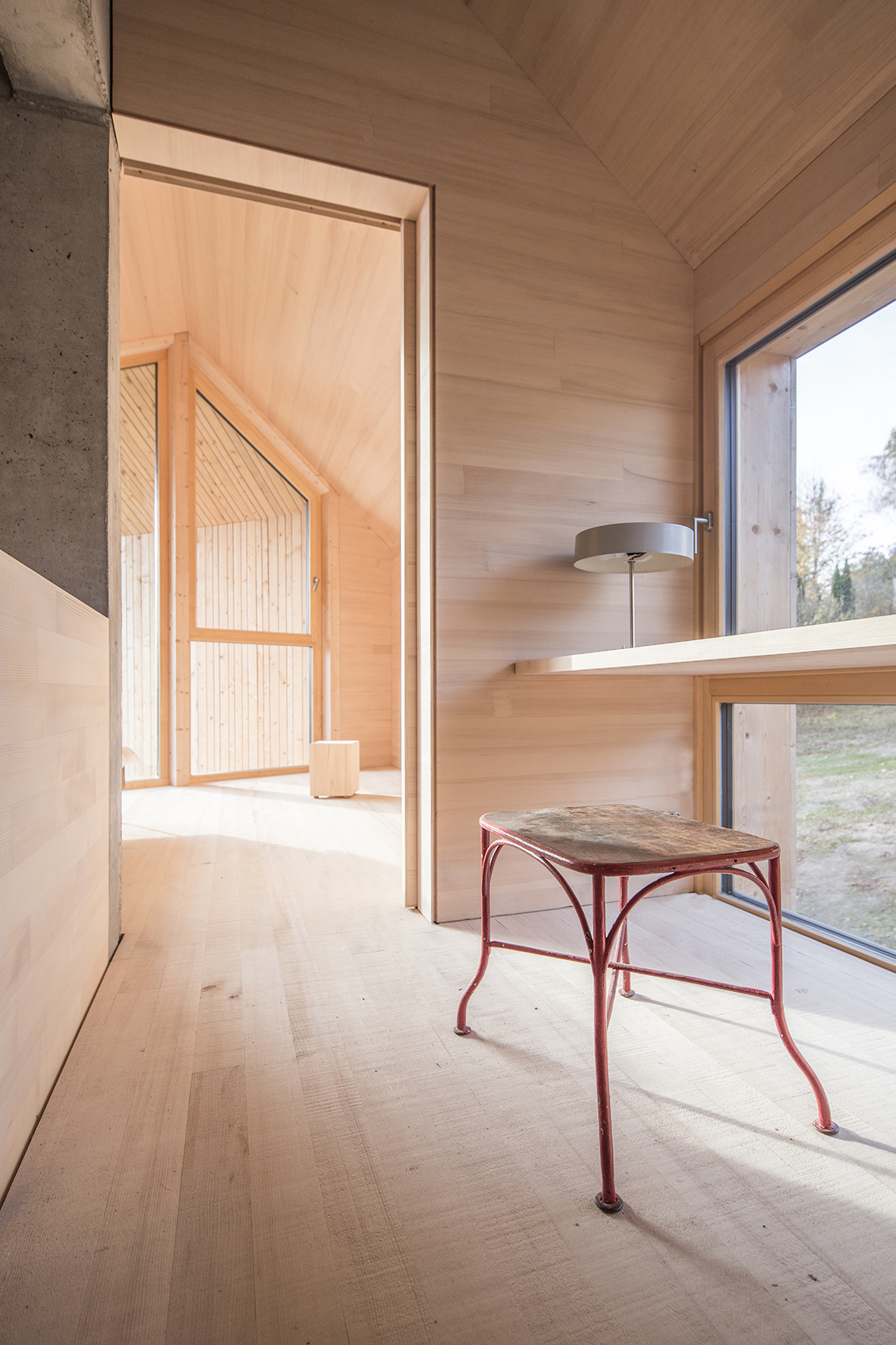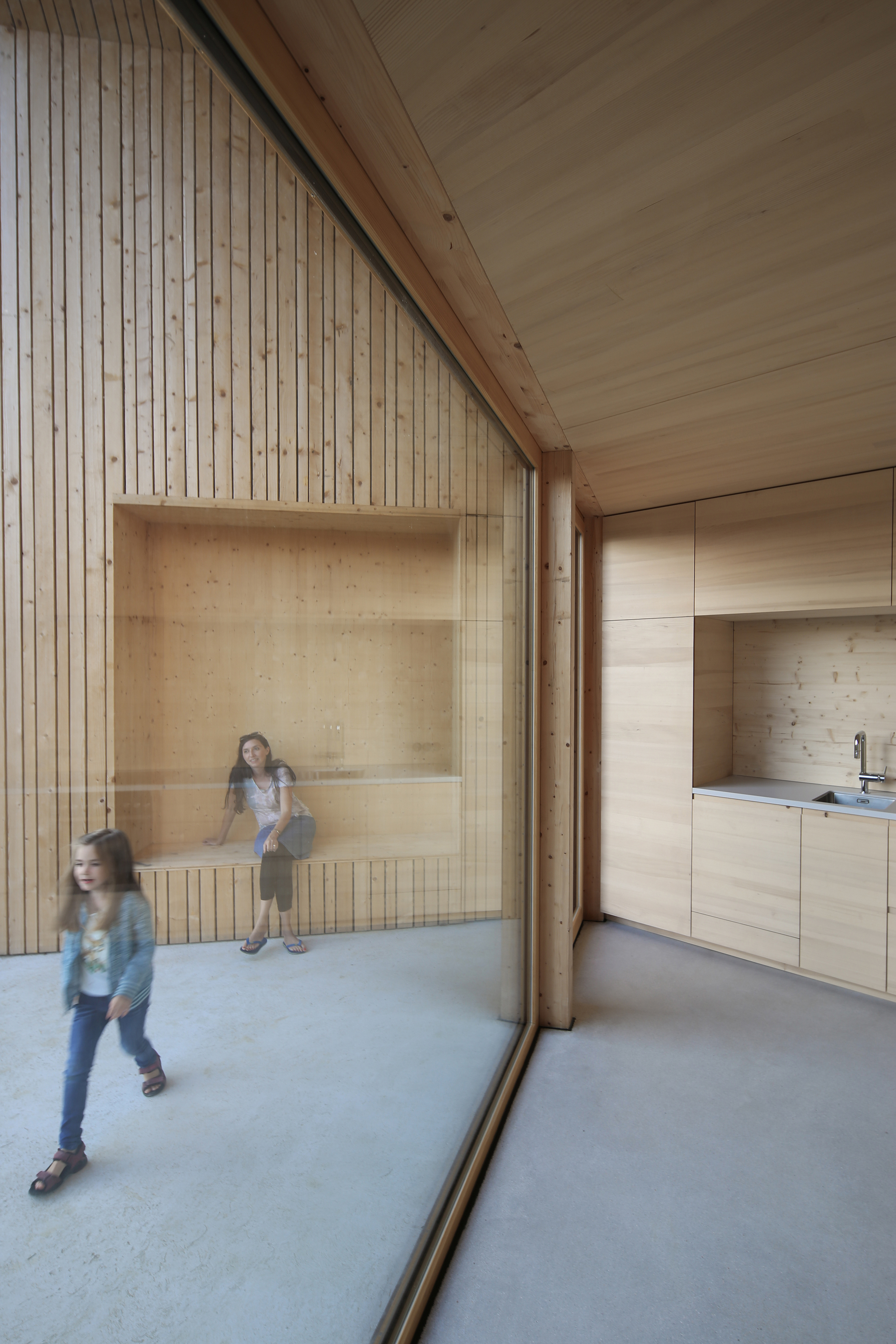 Durch die Einbettung ins Gelände konnten die Geländeveränderungen zudem minimiert werden und der Holzbau konstruktiv mit nötigem Abstand vom Terrain platziert werden.
