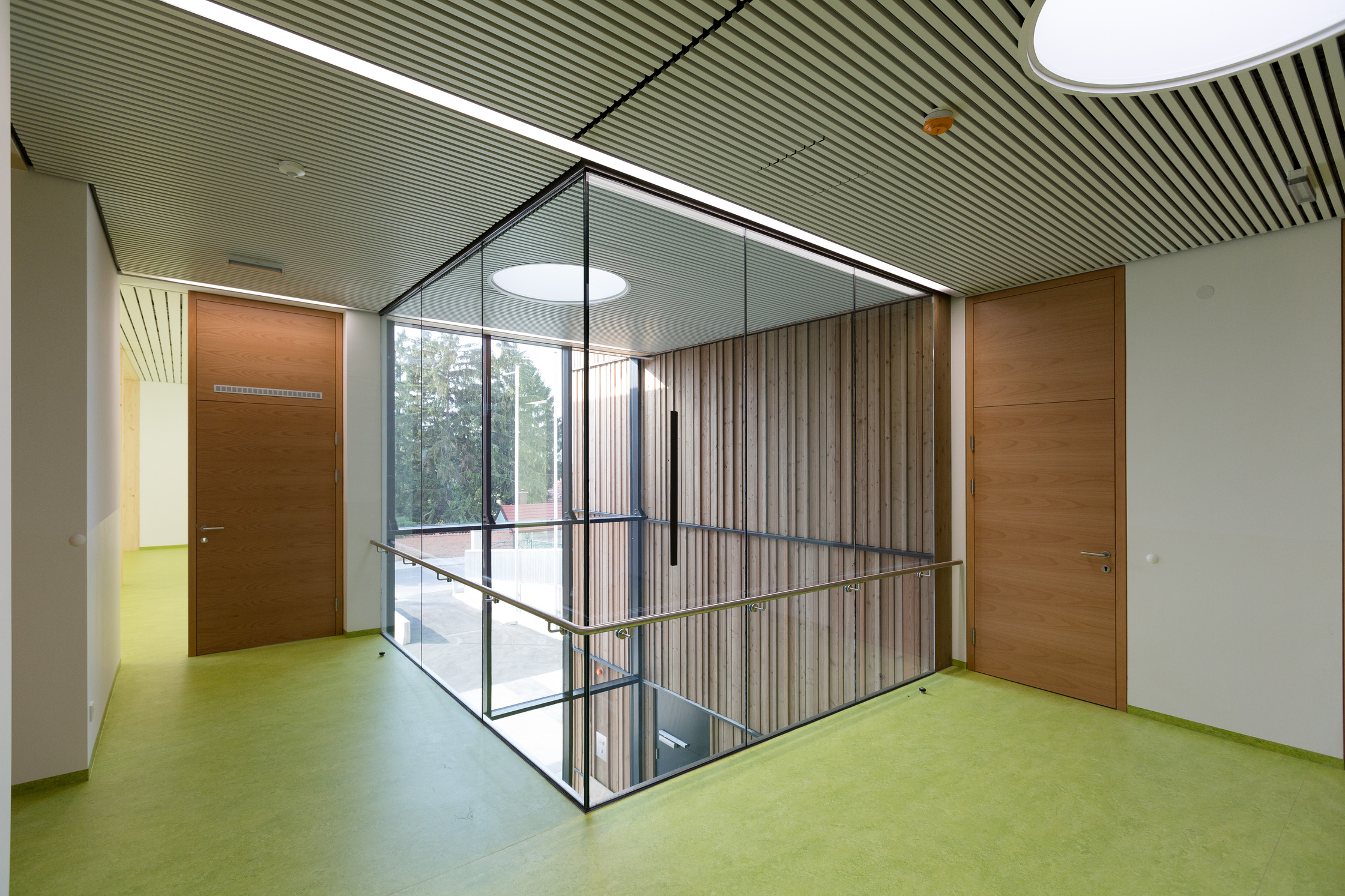 - Holzbau, Stahlbau, Stahlbeton, Überwiegende Verwendung von HFKW-freien Dämmstoffen, Vermeidung von PVC für Fenster, Türen, Vermeidung von PVC im Innenausbau