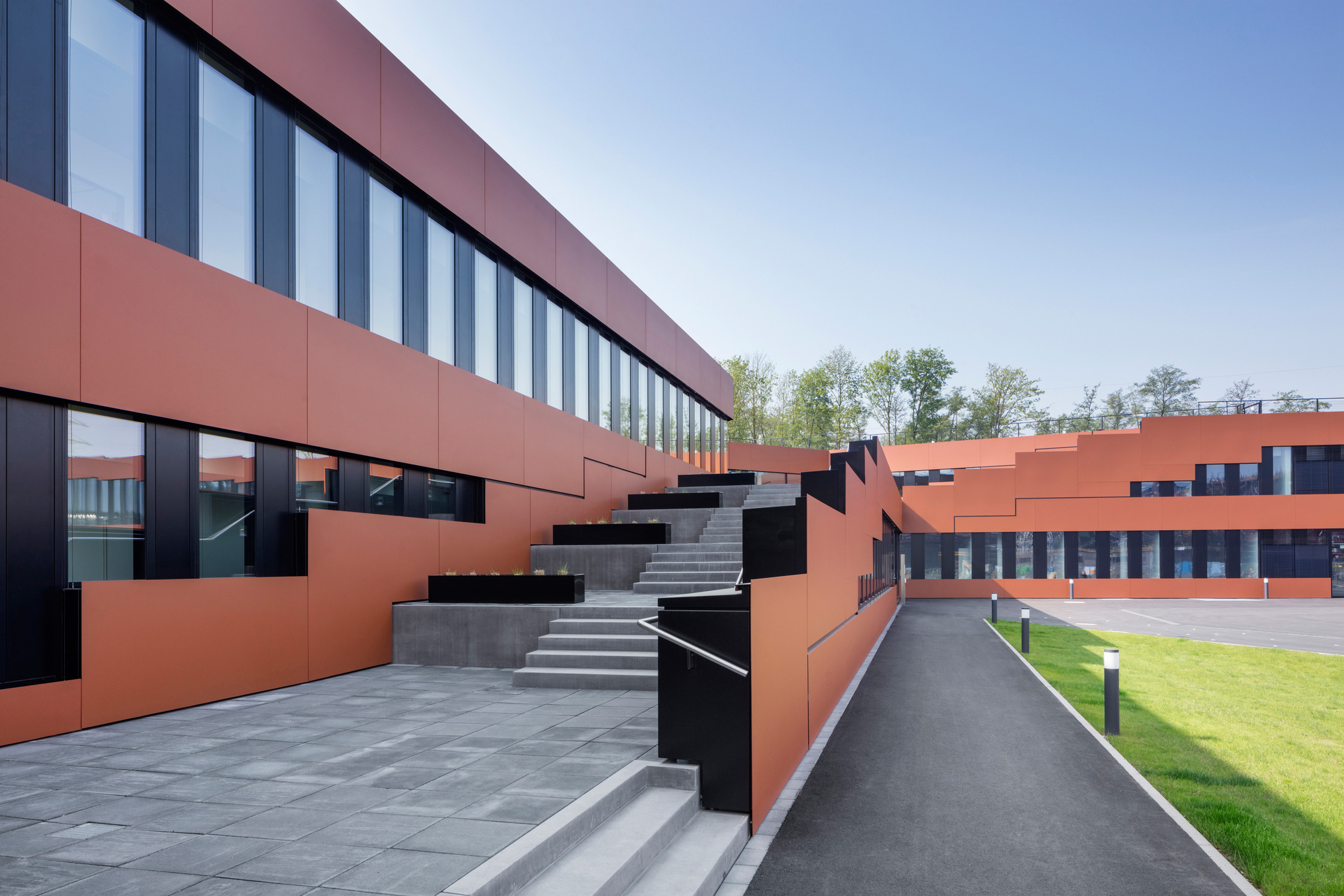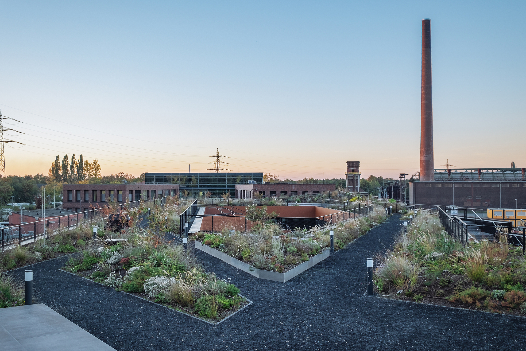 Gebäude als Rohstoffdepot: Materialpass / zero-waste-Fassade (C2C-zertifiziert) / Teppichfliesen (C2C-zertifiziert) / Bodenplatte sortenrein rückbaubar / Fassadendämmung & Fensterpaneel rezyklierbar / Wände gespachtelt, nicht verputzt / Glastüren rezyklierbar / Design for Disassembly & Recycling