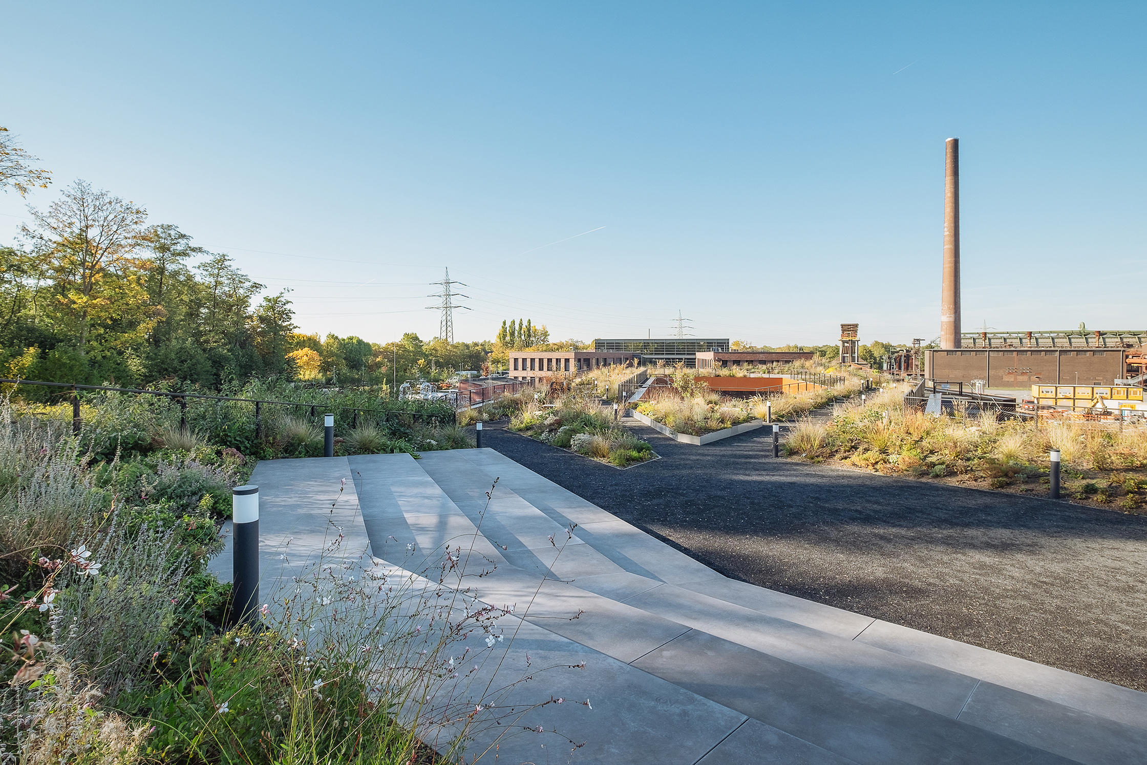 Gebäude als Kraftwerk: Geothermie / Fernwärme / Solar Pergola auf dem Dach