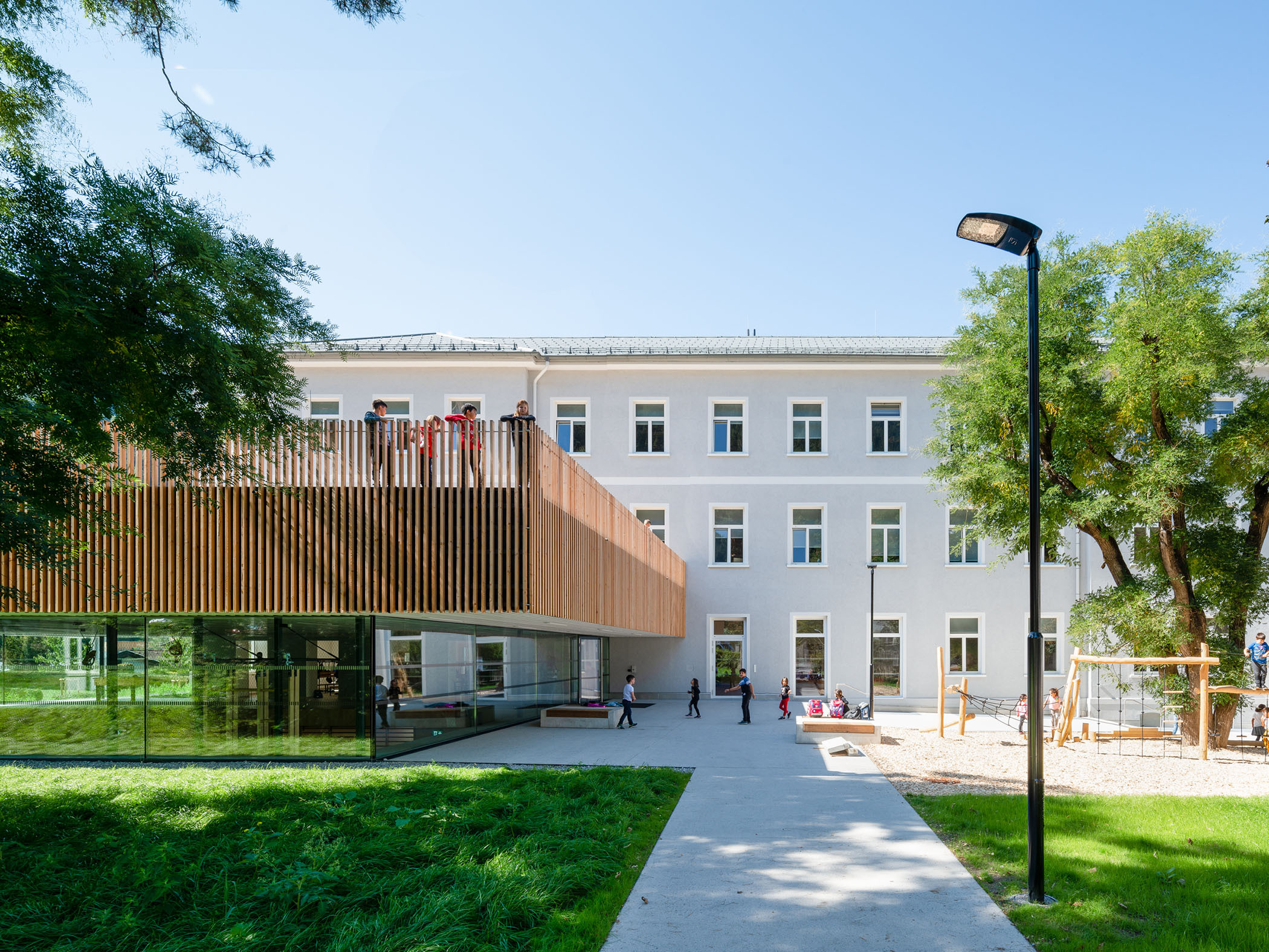 - Schule: 79,26 kWh/m²a, Turnsaal: 38,43 kWh/m²a (Energieausweis)