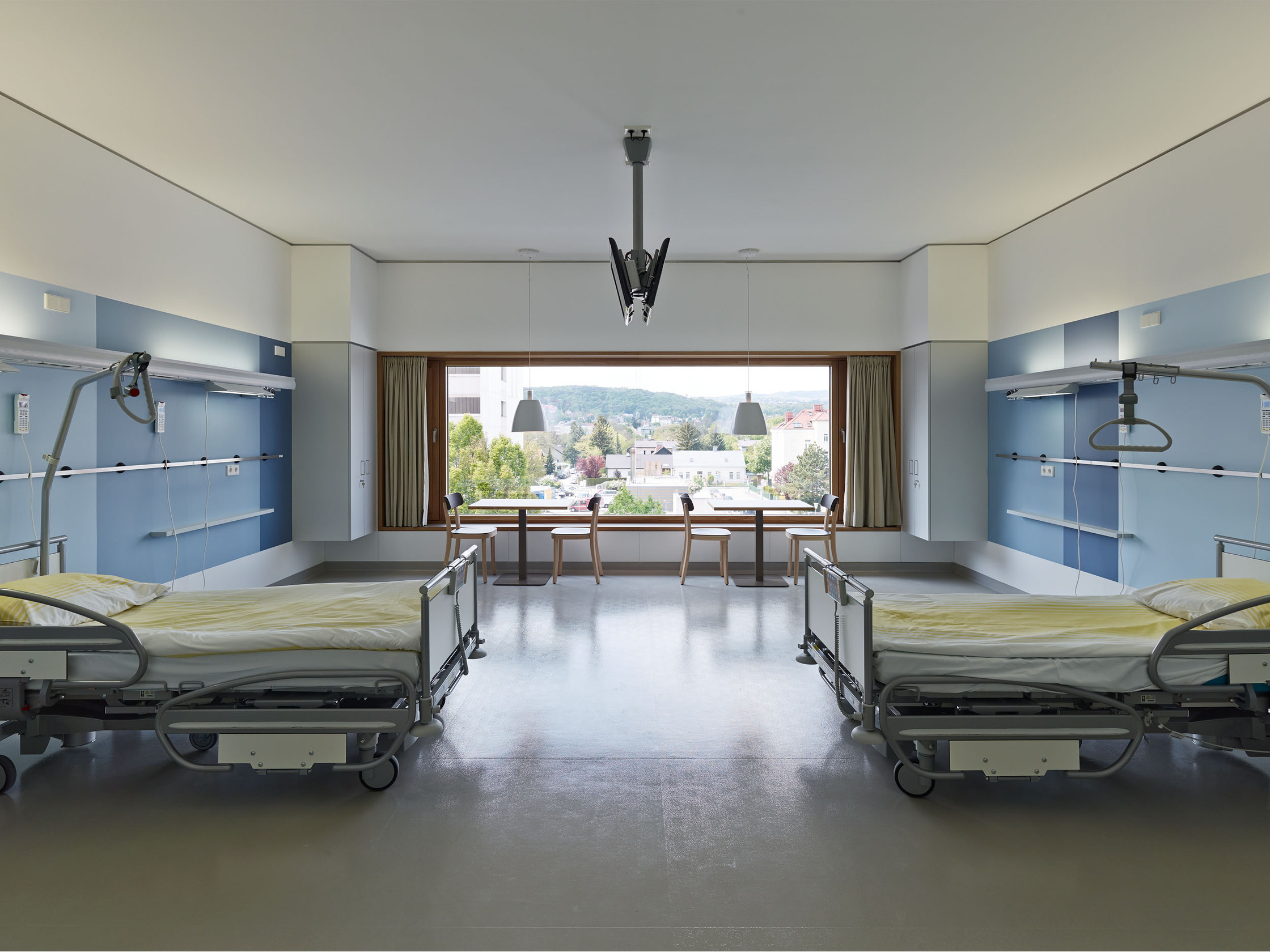 Das Krankenhaus in Mödling ist ein mittelgroßes Haus mit 351 Betten in 150 Zimmern, realisiert um Errichtungskosten von 158 Millionen Euro. Zum Vergleich: Die Klinik Floridsdorf in Wien – ehemals Krankenhaus Nord – bietet etwas mehr als doppelt so viele Betten, ist aber mindestens achtmal so teuer. Mit dem Krankenhaus Nord hat das Krankenhaus Mödling nicht nur einen Namenswechsel zum Schickeren gemeinsam – es heißt heute Landesklinikum Thermenregion Mödling –, sondern auch ein ähnliches Geburtsjahr: Der Wettbewerb für das Landesklinikum wurde 2007 entschieden, jener für die Klinik Floridsdorf im Jahr 2008. Beide gingen vergangenes Jahr, also nach rund zwölf Jahren Bauzeit, in Betrieb.