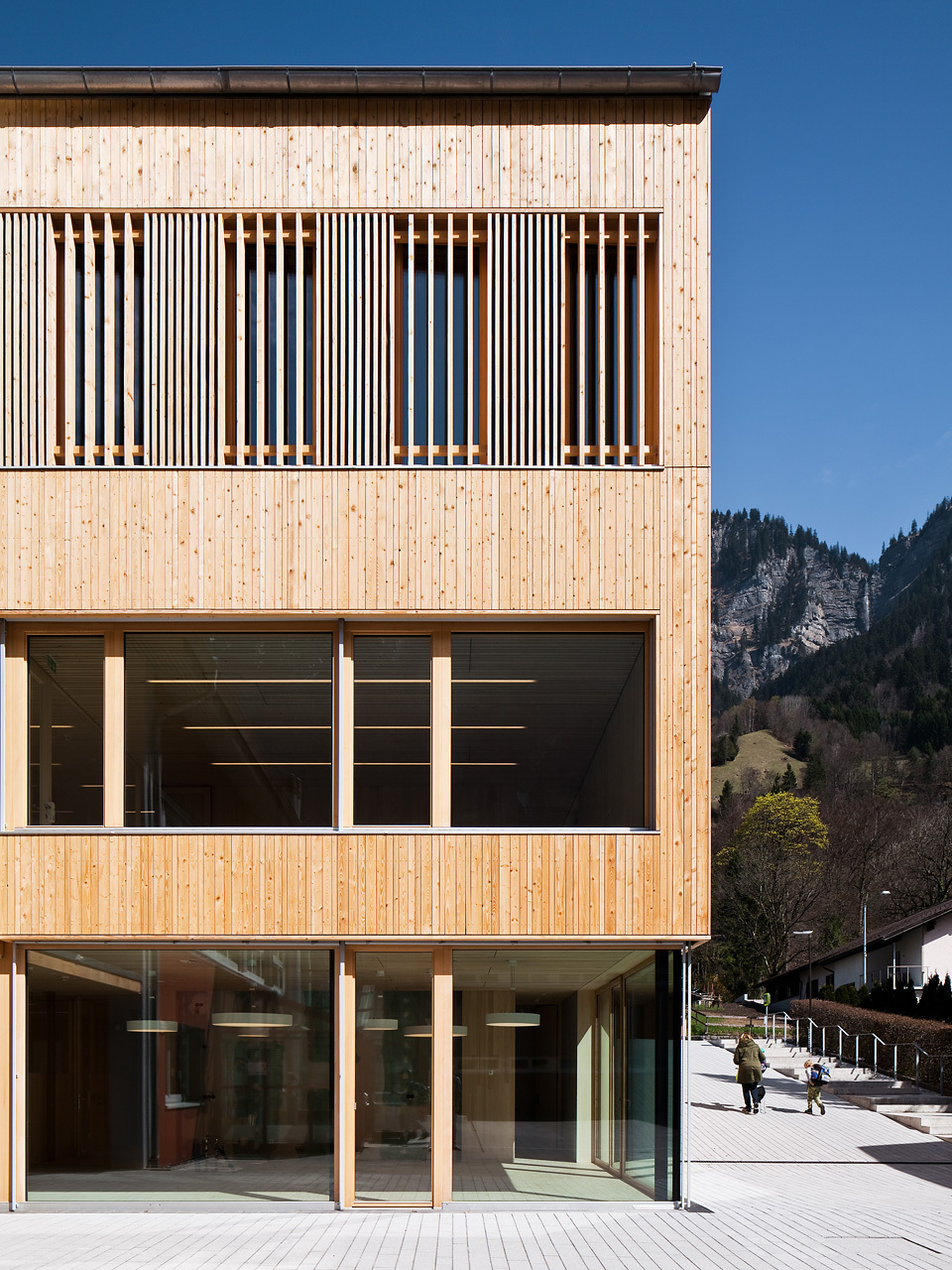 Der kompakte Baukörper erreicht durch kontrollierte Gebäudelüftung und hochwertige Verglasungen hohe Energieeffizienz. In enger Zusammenarbeit mit dem Umweltverband und dem Energieinstitut wurde das „Servicepaket Nachhaltig:Bauen in der Gemeinde“ umgesetzt. Die konsequente Bearbeitung dieses Anforderungsprofils spiegelt sich im Vorarlberger Kommunalgebäudeausweis mit 946 Punkten (von 1000) wider.