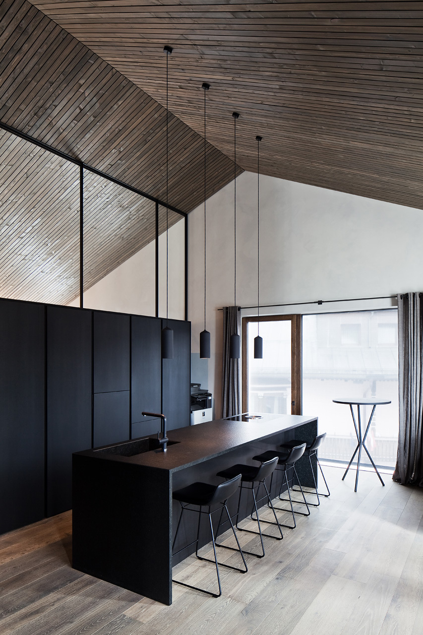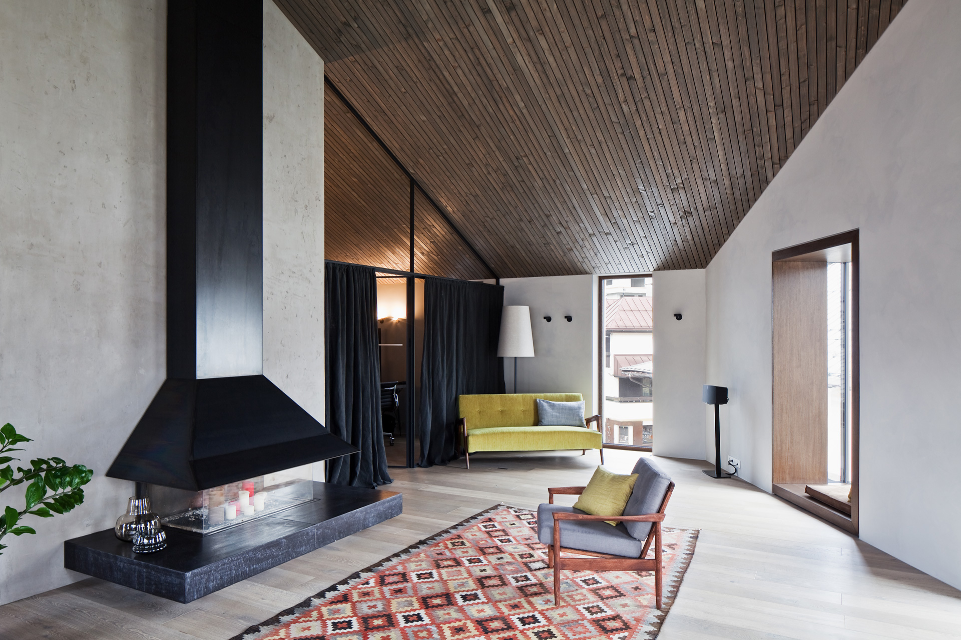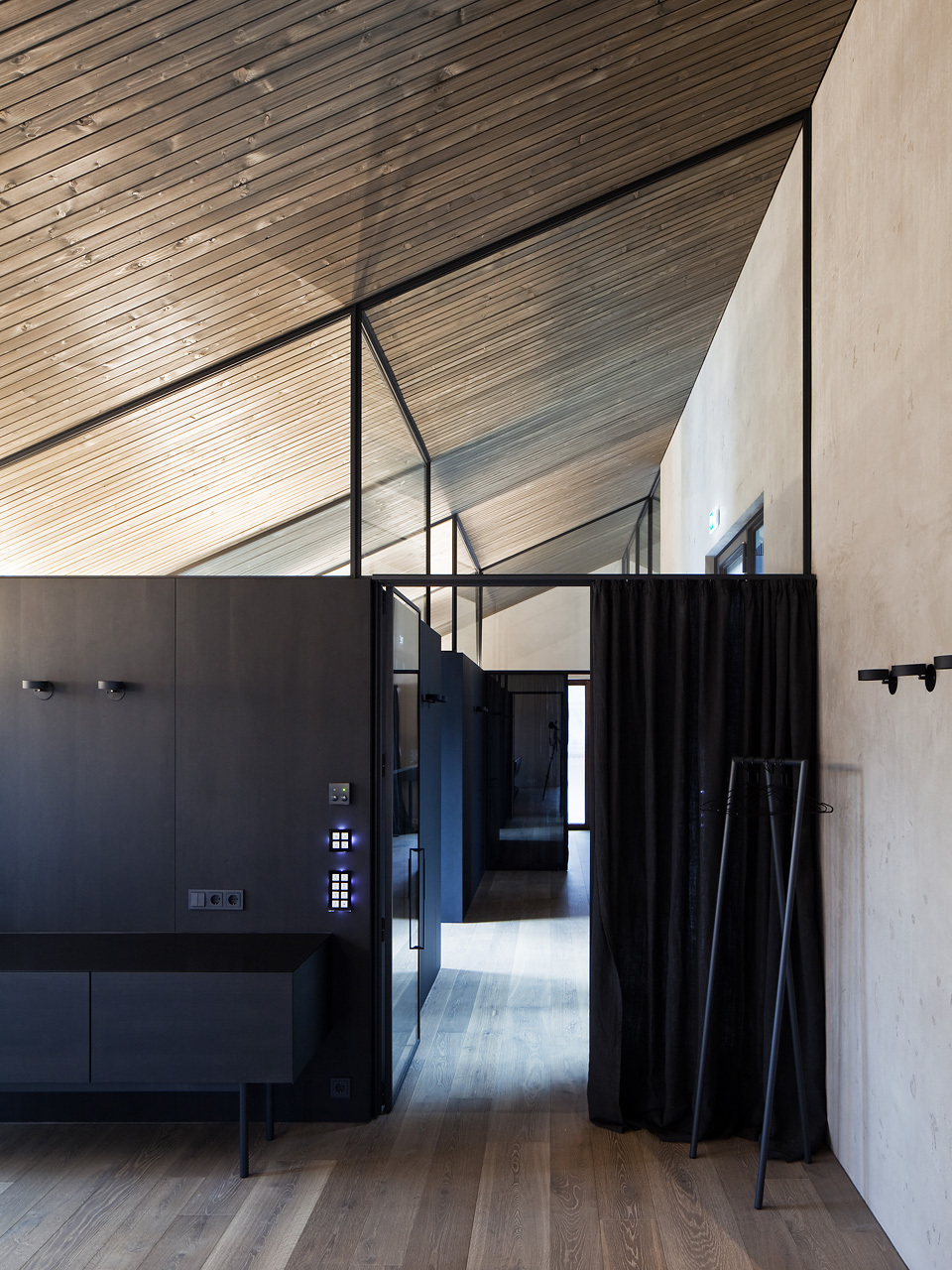 Um den Luftaustausch der Büroeinheiten zu gewährleisten, verfügt das oberste Geschoss über eine Wohnraumlüftung. Das Dachgeschoß ist als Holz-Riegel-Bau ausgebildet, während das Dach aus einer Massivholzkonstruktion besteht, um nachhaltig sowohl in der Bauführung als auch in der Materialität zu sein. An der Fassade wie auch im Innenbereich kamen Naturmaterialien zum Einsatz: HOLZ/ STEIN / STAHL / BETON / TEXTILIEN.